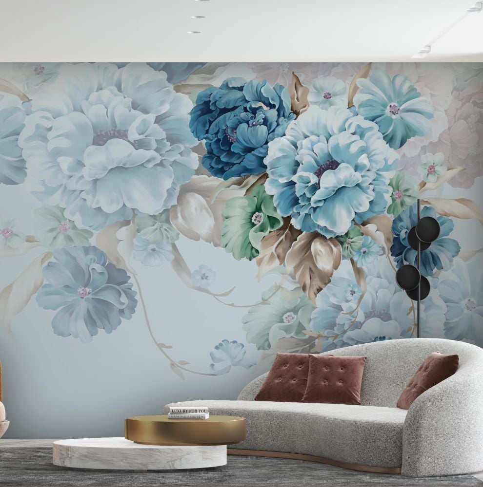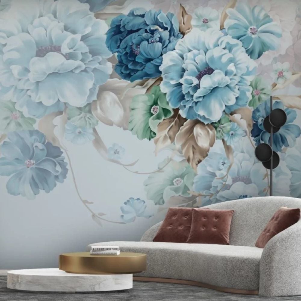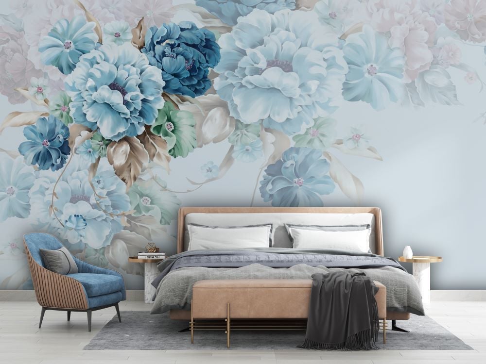 Mavi Turkuaz Ortanca Çiçekler Duvar Kağıdı