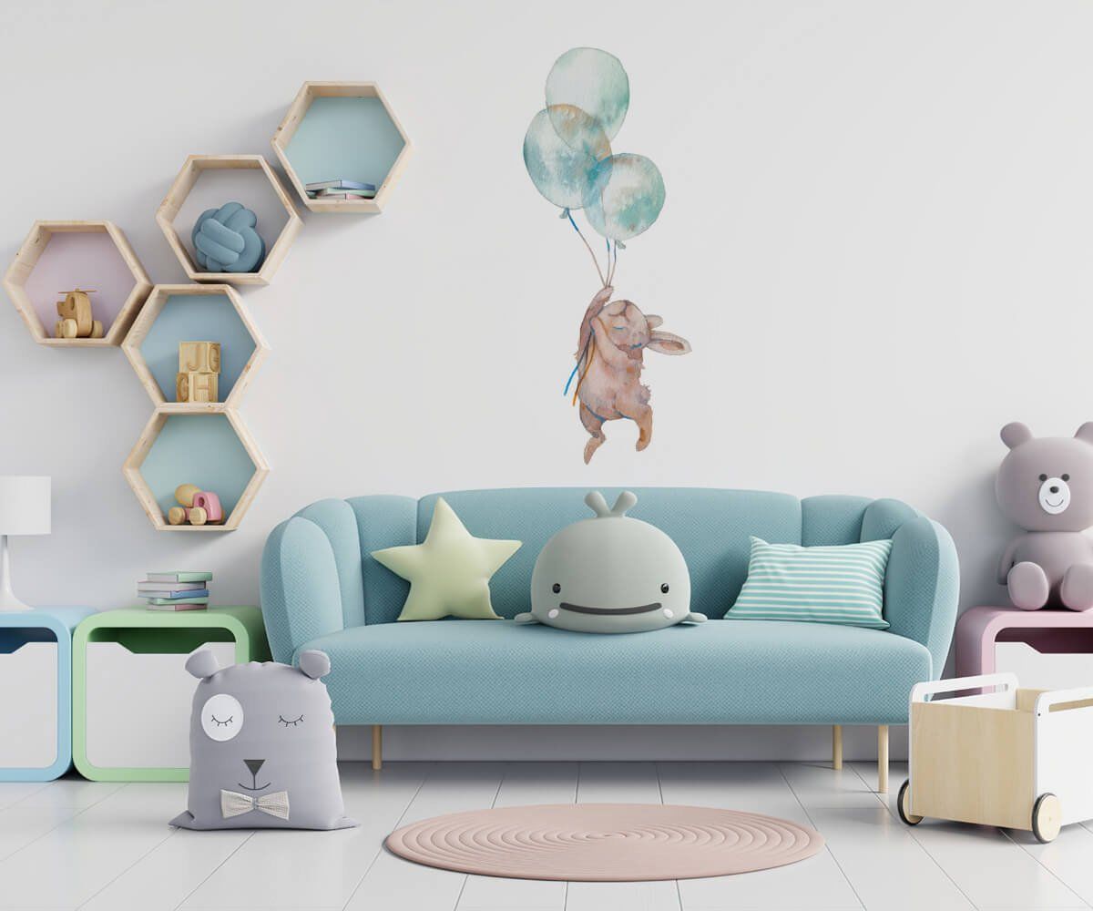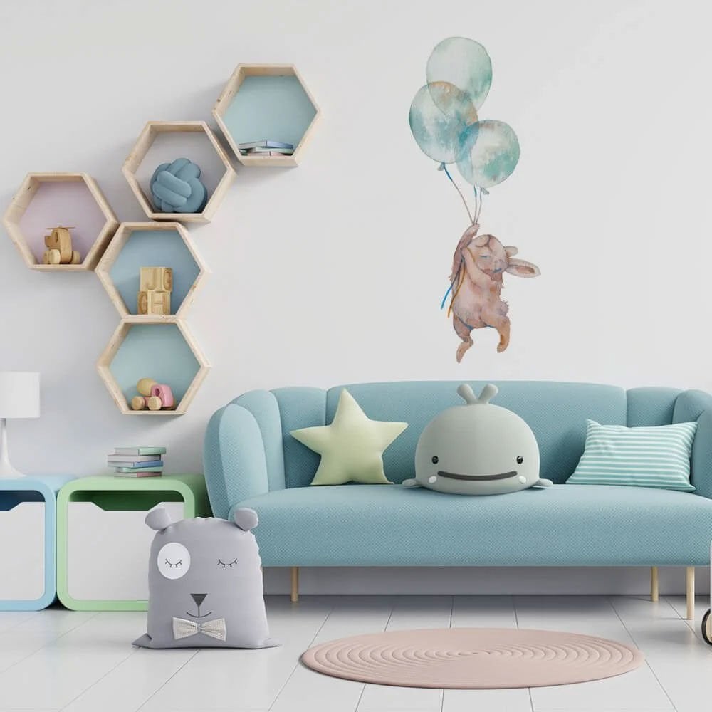 Mavi Uçan Balonlu Tavşan Duvar Kağıdı