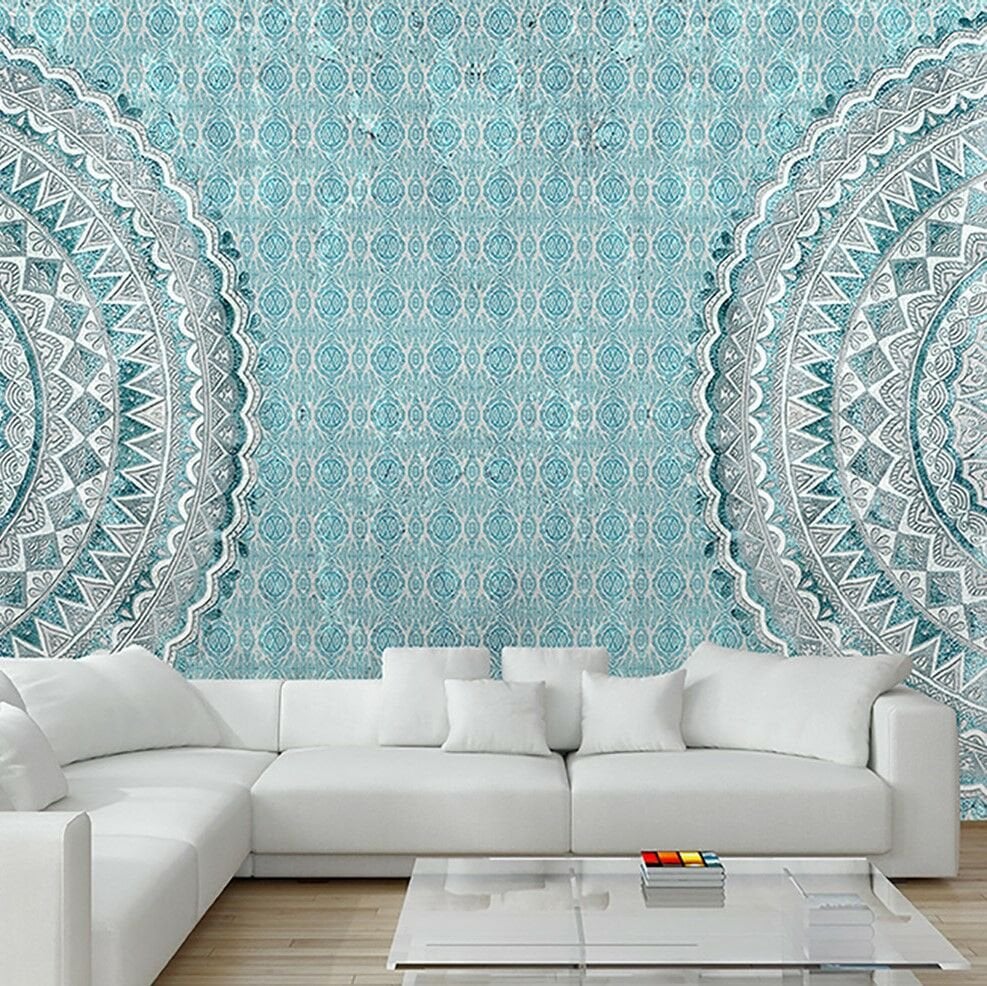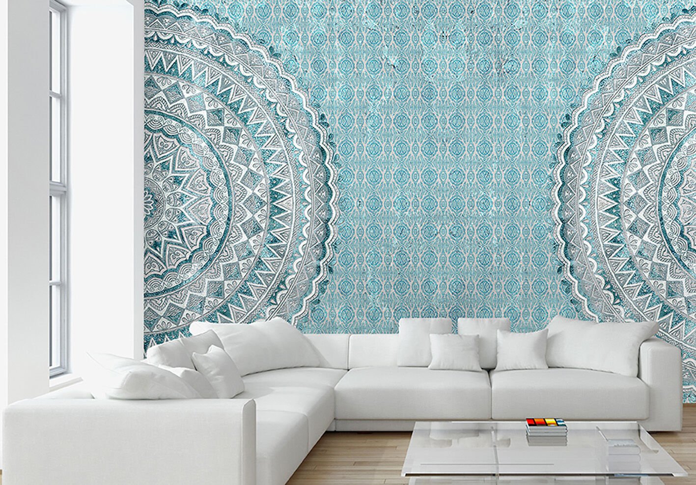 Mavi Zeminde Mandala Desen Duvar Kağıdı