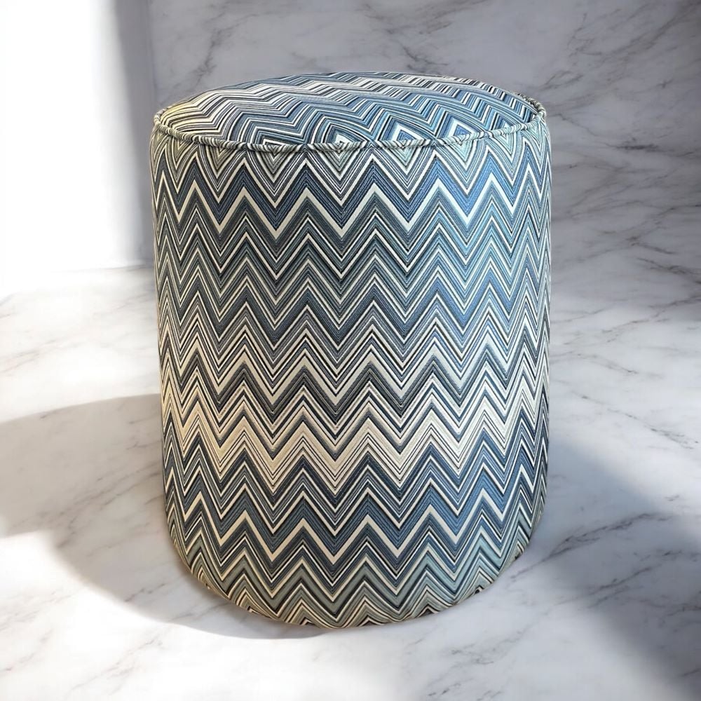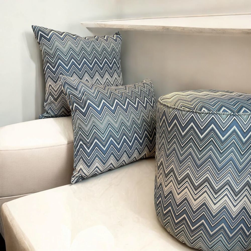 Mavi Zigzag Desenli Puf Ve Kırlent