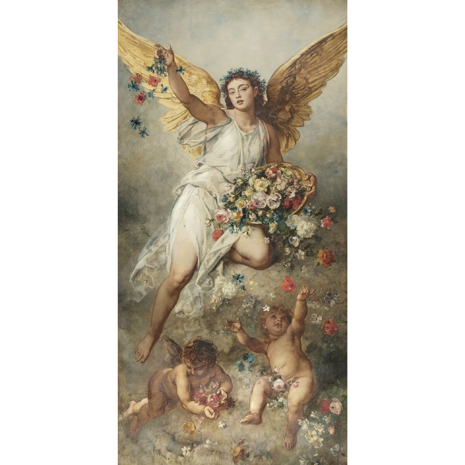 Minik Melekler Ve Anneleri Çiçekler İçinde Duvar Kağıdı
