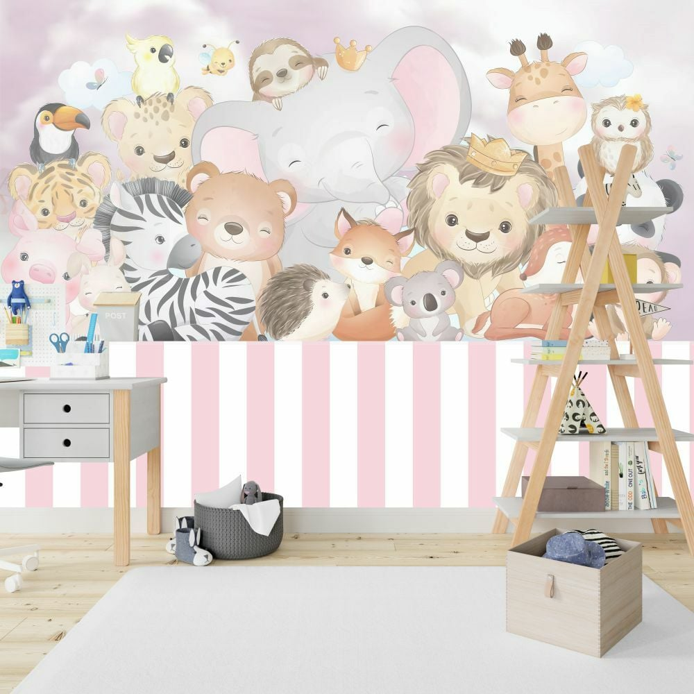 Çocuk odaları için tasarlanan bu duvar kağıdı modeli, neşeli hayvan figürleri ve yumuşak renk geçişleri ile yaşam alanlarına sıcak, eğlenceli ve estetik bir atmosfer kazandırır. Hem dekoratif hem de kullanışlı yapısı sayesinde çocuk odalarında keyifli bir görünüm oluşturur.