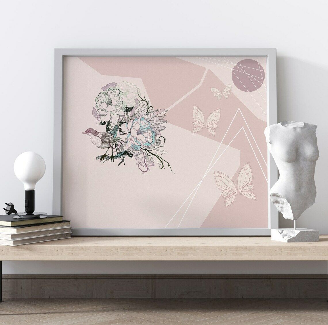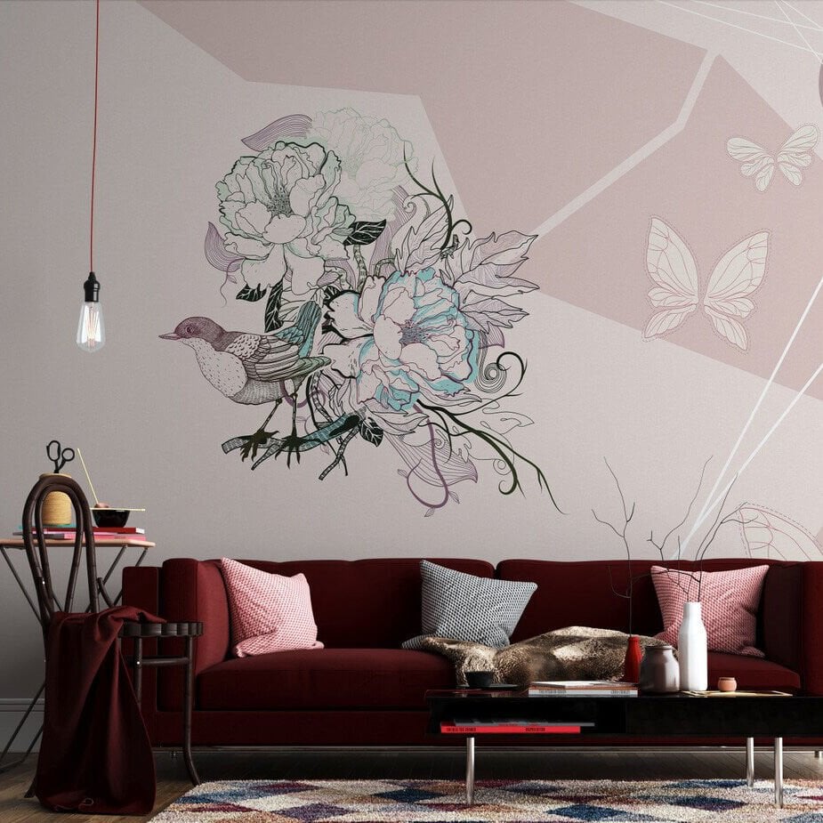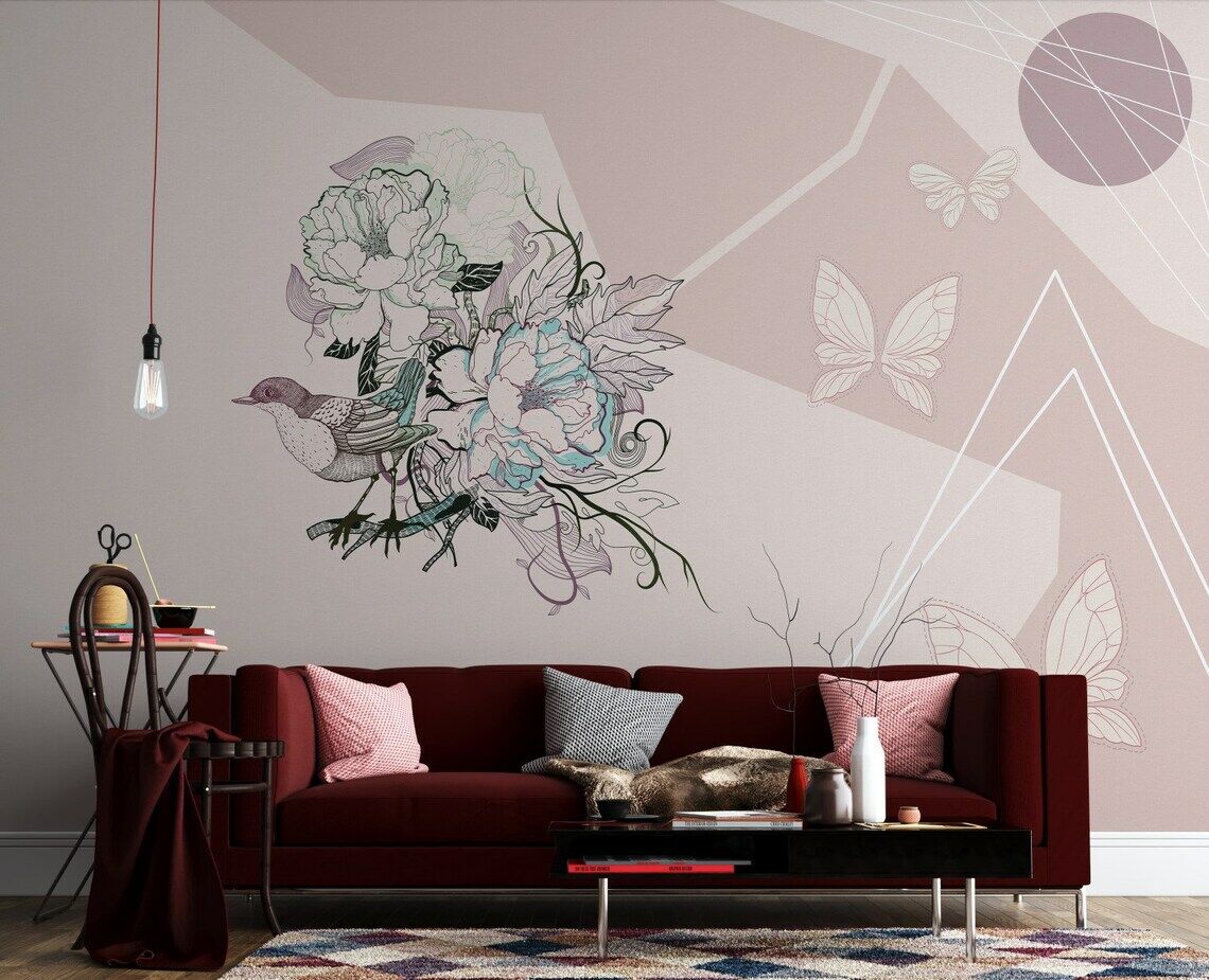 Minimal Çizim Kuşlar Kelebekler Duvar Kağıdı