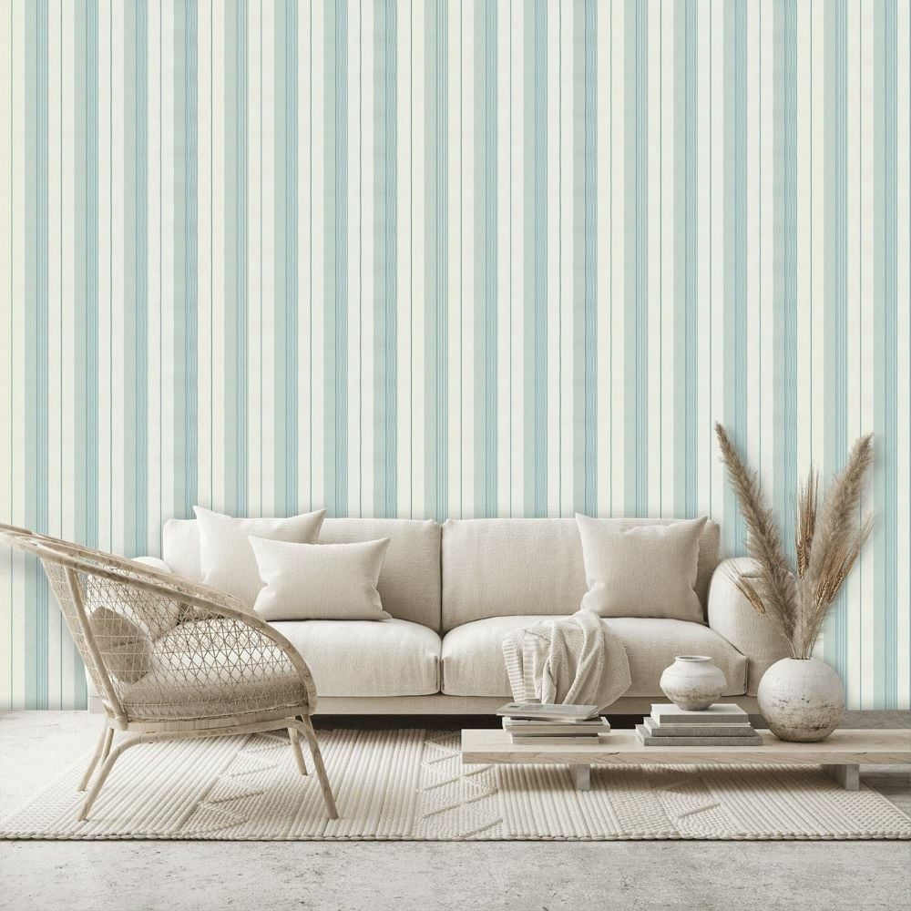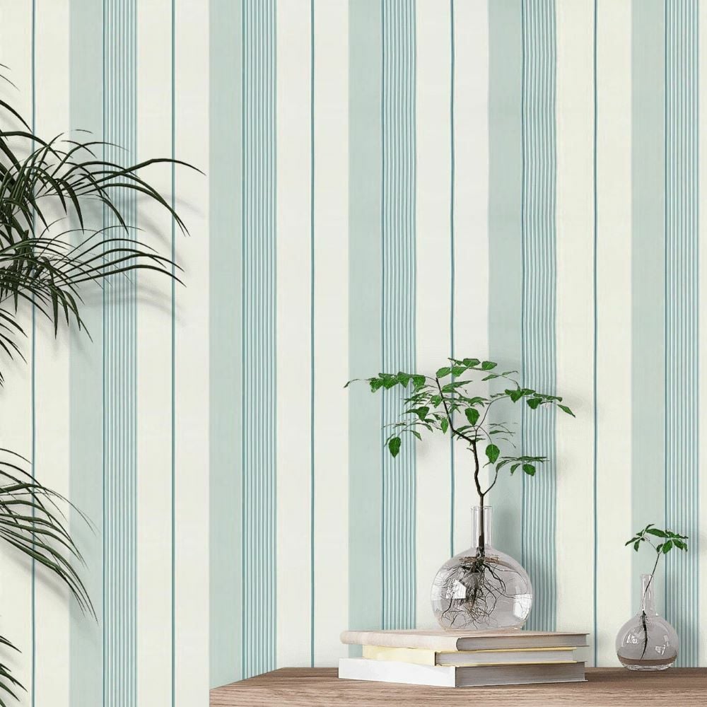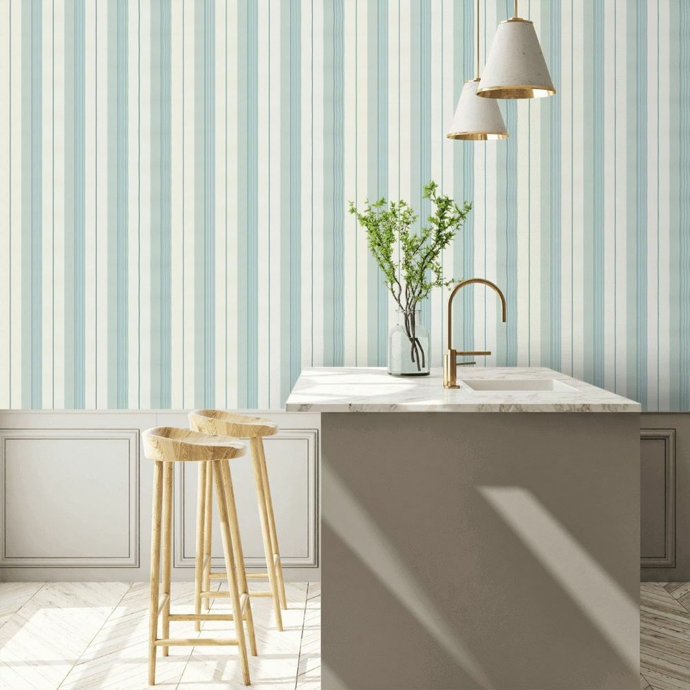 Mint Beyaz Mavi Şeritli Duvar Kağıdı