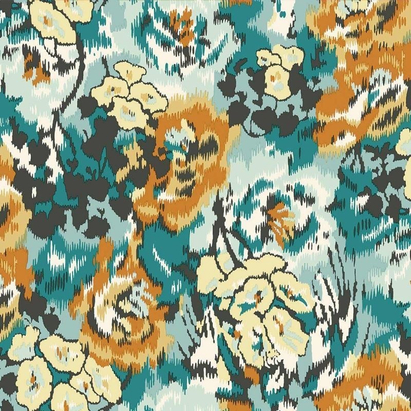 Çiçek buketlerinin pembe, yeşil, mavi ve sarı renk sıçramalarına dönüştüğü, pastel veya daha yoğun tonlarda turuncuya,