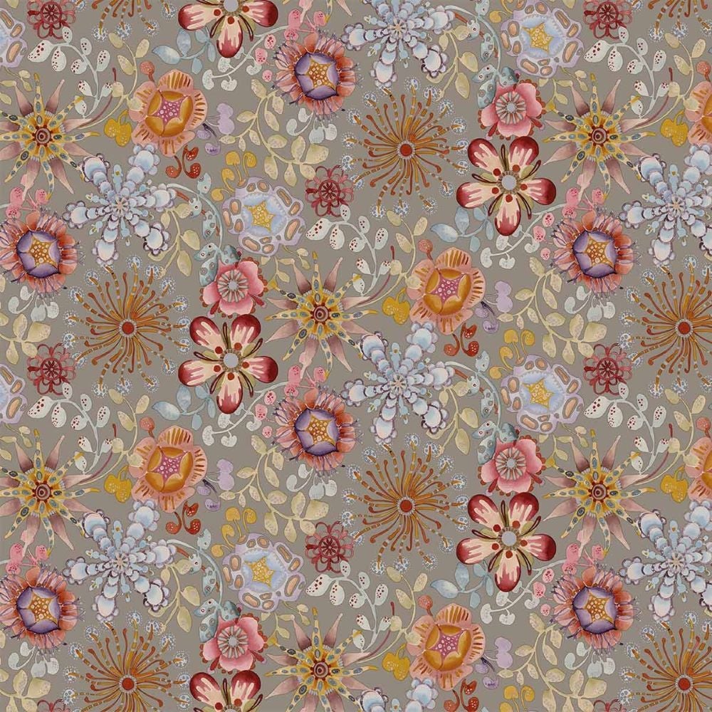 gri tonlarında sofistike varyasyonlarda çiçekler ve yapraklar sunan Magic Garden tasarımında da doğaya bir övgü.