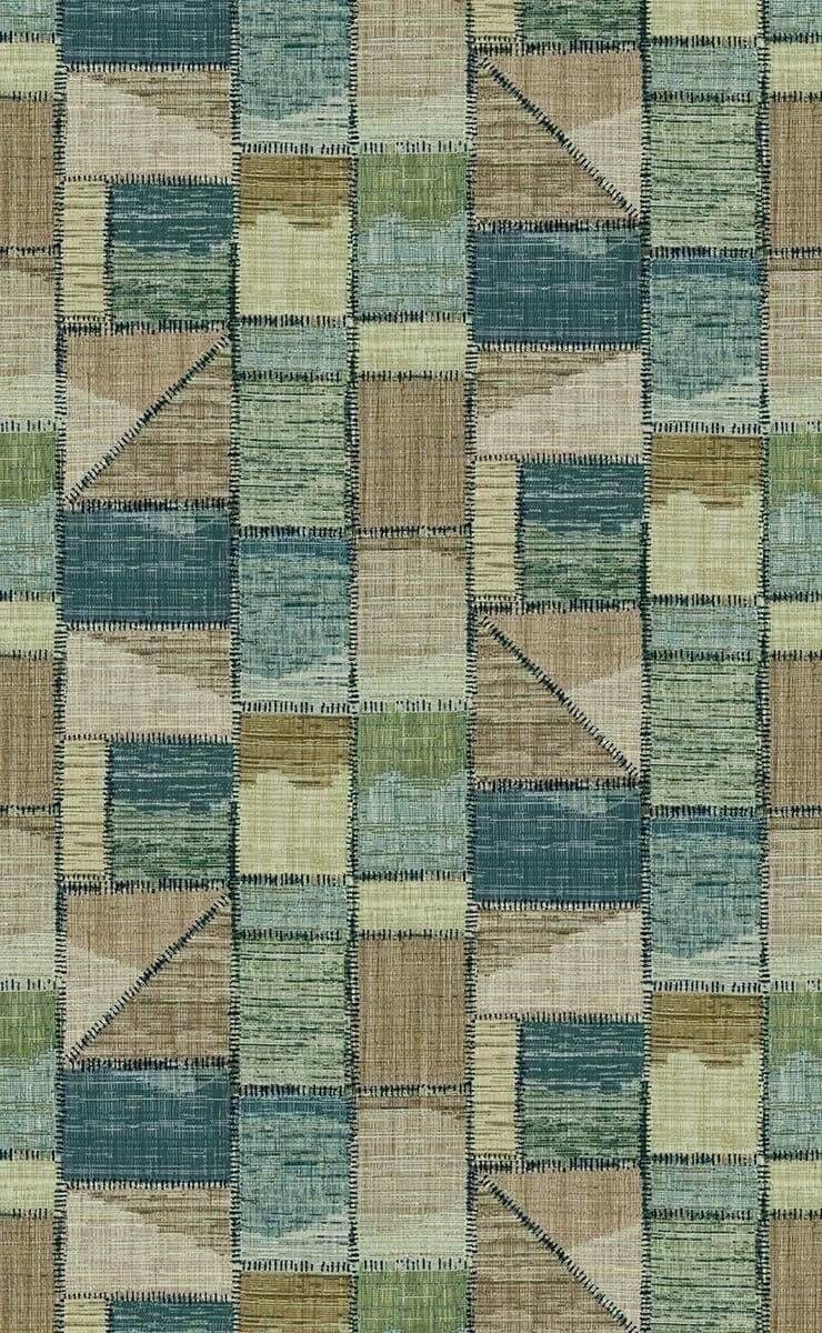 Empresyonist fırça darbeleri. Çeşitli uzunlukları ve genişlikleri, çözgü ve atkılarıyla bu patchwork'ü yeşil, maviler, griler ve koyu sarı ile çeşitli renklerde hayata geçirir.