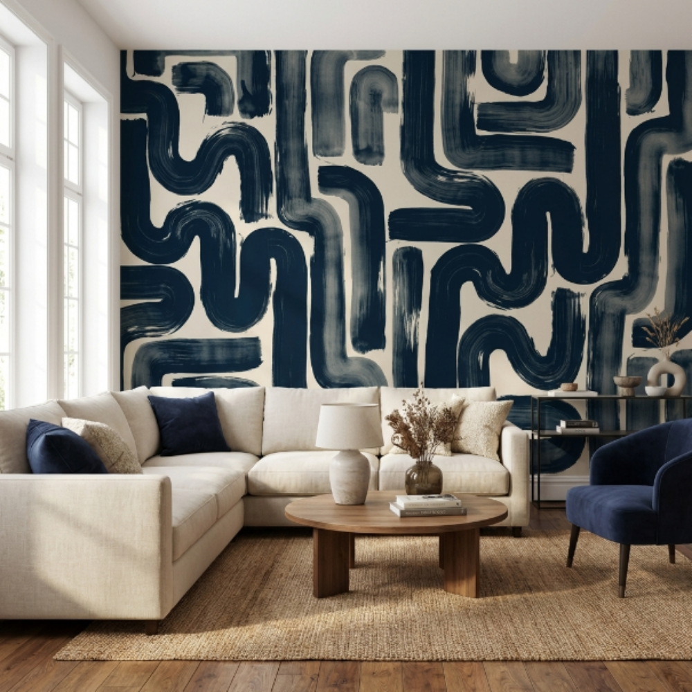 Modern Geometrik Fırça Desenli Duvar Kağıdı, güçlü ve akışkan fırça darbelerinden oluşan geometrik formu ile yaşam alanlarına modern ve sanatsal bir karakter kazandırır. Derin lacivert tonların açık zemin üzerinde kontrast oluşturduğu bu tasarım, mekânda dikkat çekici ve sofistike bir atmosfer yaratır. Dinamik hatları sayesinde duvar dekorasyonuna hareket kazandırırken, dengeli renk kullanımı ile şık ve zamansız bir görünüm sunar. Uygulama yapılacak alanın ölçüsüne göre özel olarak üretilmektedir. Görsel renkleri tablet, bilgisayar veya telefon ekranlarında %3-5 oranında farklılık gösterebilir.