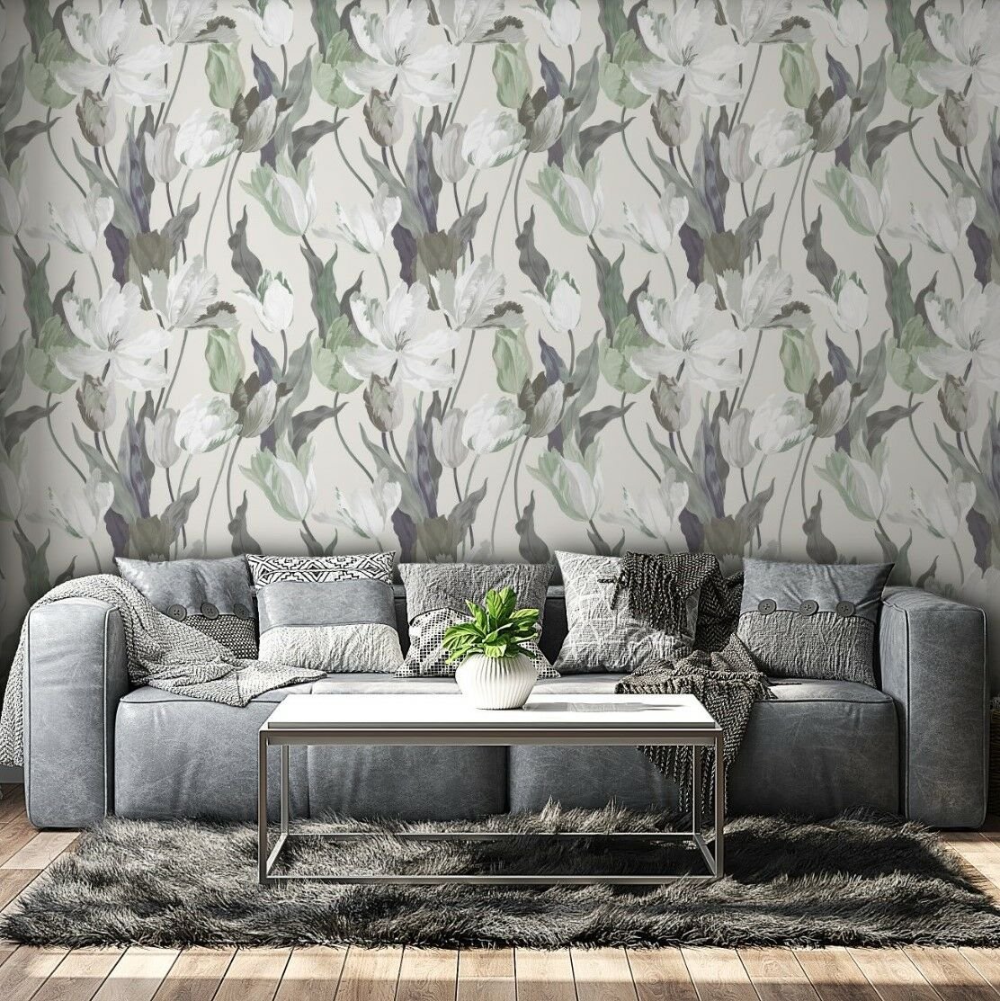 Mürdüm Gri Laleler Tasarım Duvar Kağıdı