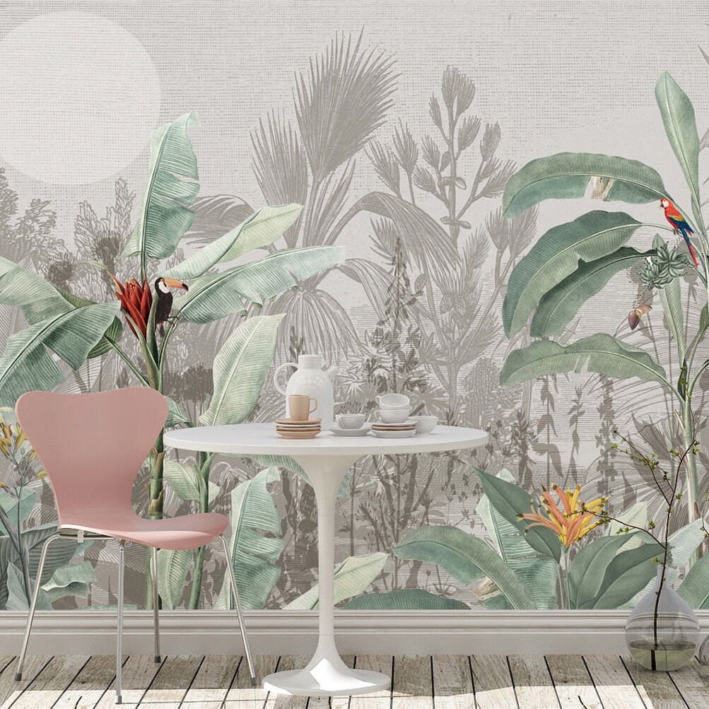 Muz Ağaçları Egzotik Papağanlar Duvar Kağıdı