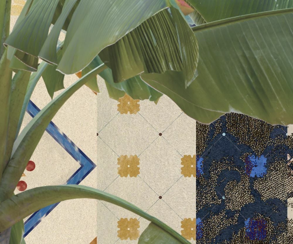 Muz Ağaçları İçinde Karo Desenler Tasarım Duvar Kağıdı
