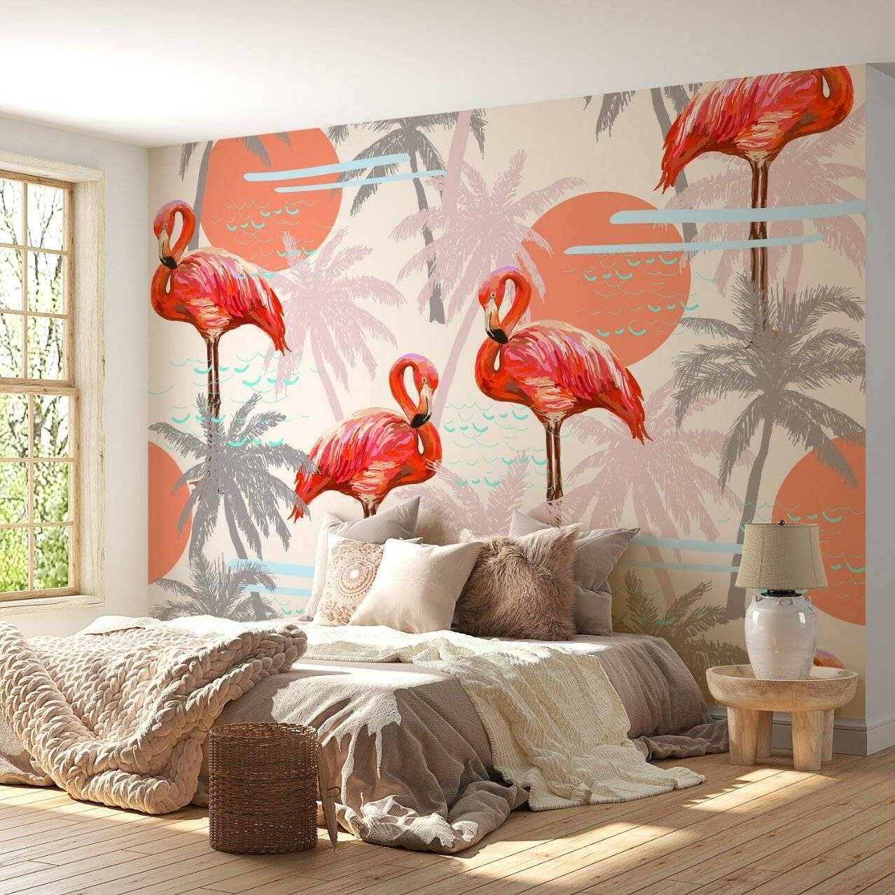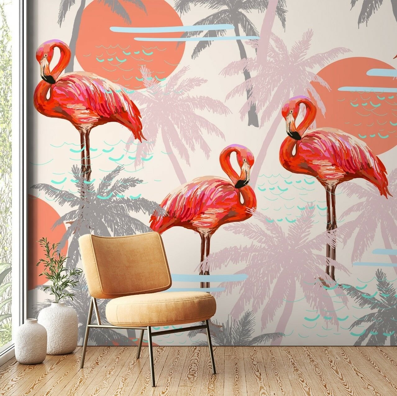 Nar Çiçeği Pelikanlar Tasarım Duvar Kağıdı