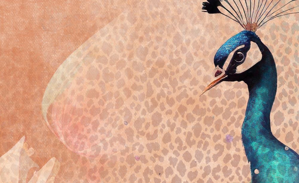 Nilüfer Çiçeği Üstünde Zarif Tavus Kuşu Duvar Kağıdı