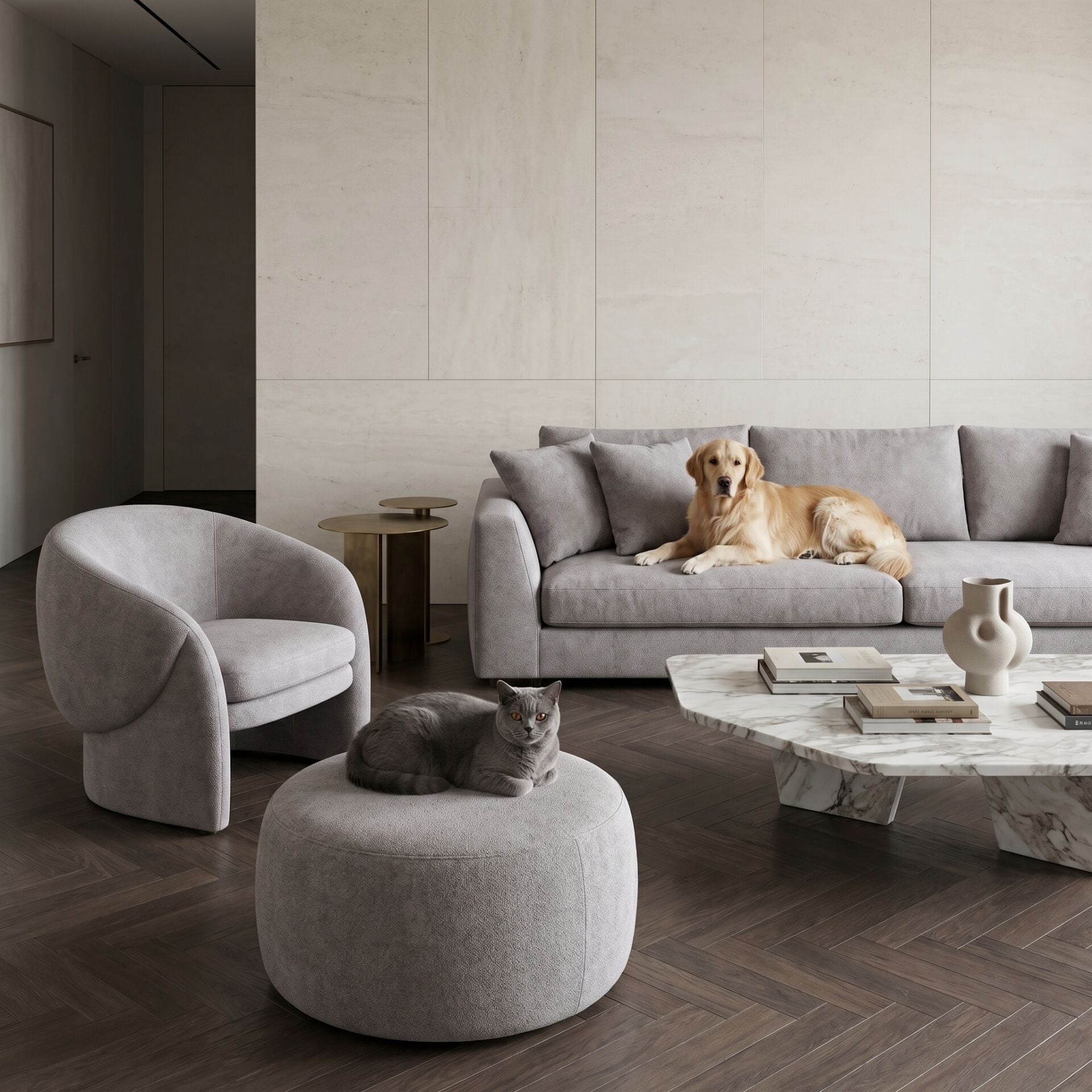 Noble serisindeki pati dostu kumaşlar; lekelere karşı dirençli yüzeyiyle günlük kirlerin kolay temizlenebilir olmasını sağlar, tüylerin kolayca temizlenmesine olanak tanıyan tüy tutmaz dokusuyla temizlik sürecini kısaltır ve sentetik bileşenleriyle uzun ömürlü kullanım sunar. Evcil hayvan sahiplerinin tercihinde pati dostu kumaşları öne çıkaran başlıca özellik, bu pratik ve dayanıklı yapıdır.
