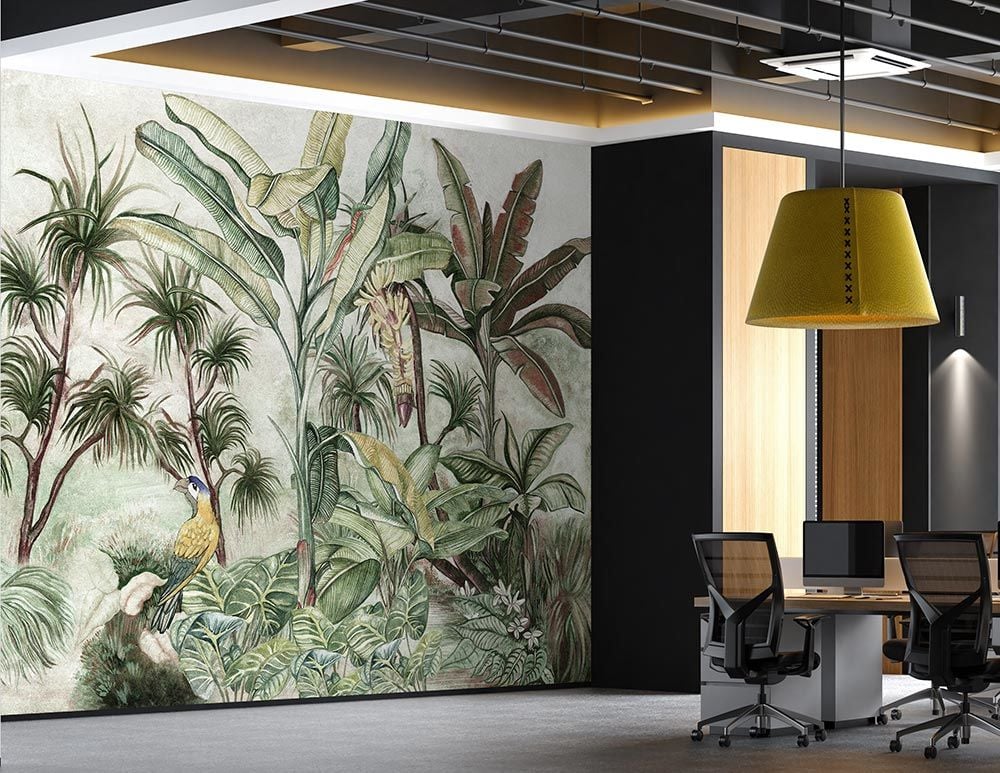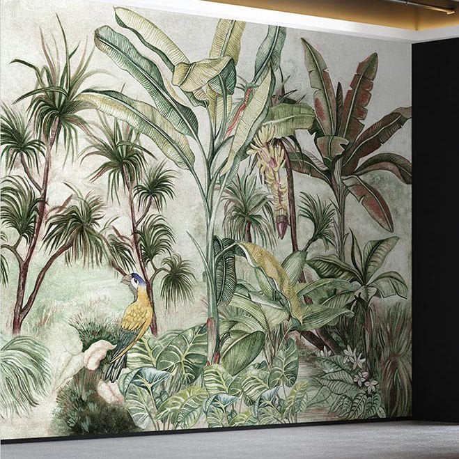 Pastel Çizim Papağan Ağaçlar Duvar Kağıdı