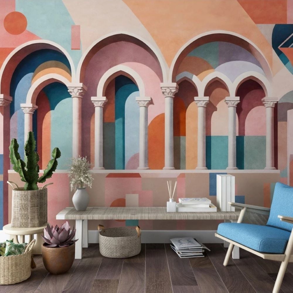 Pastel Renkler Sütunlar Tasarım Duvar Kağıdı