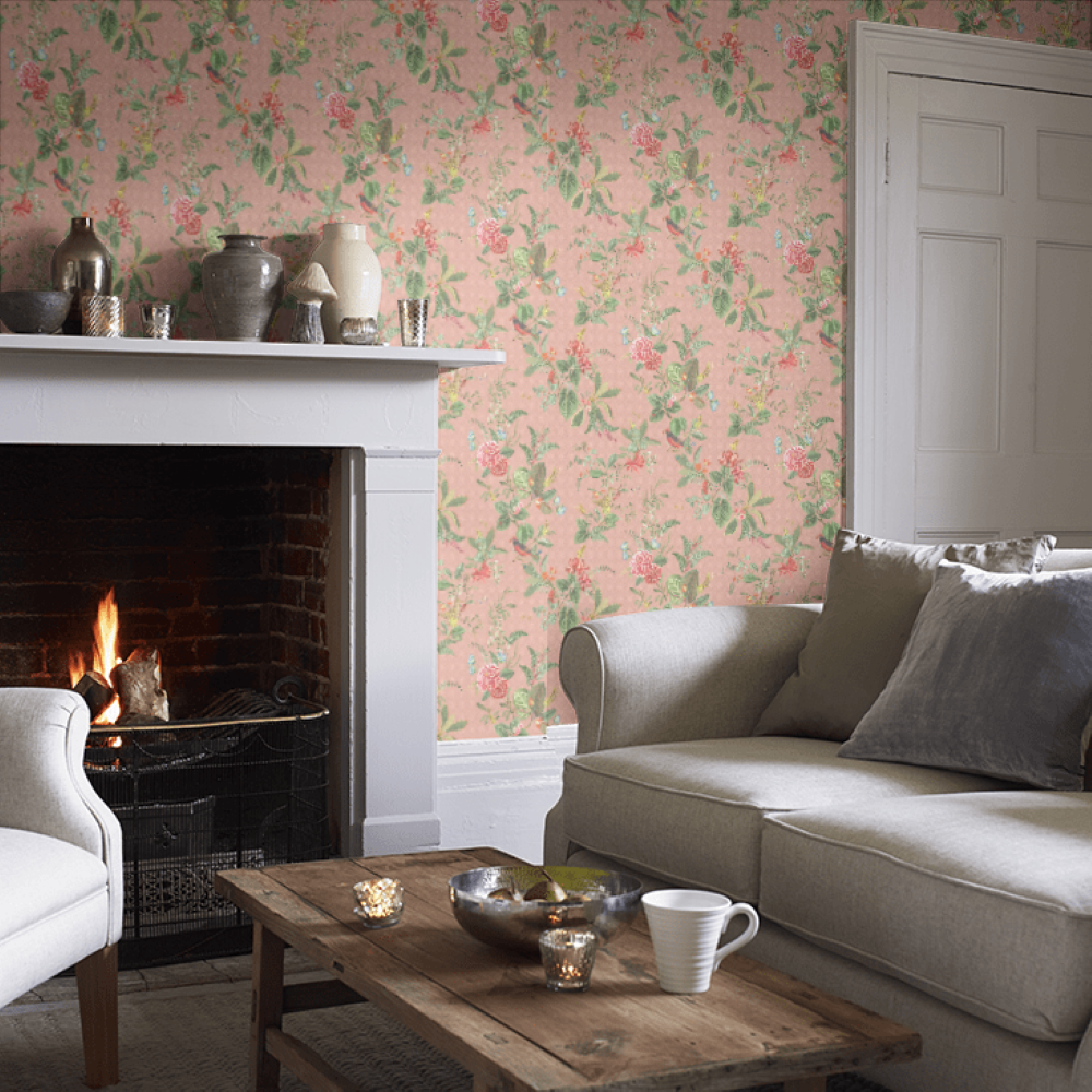 Pembe Botanik Floris Duvar Kağıdı