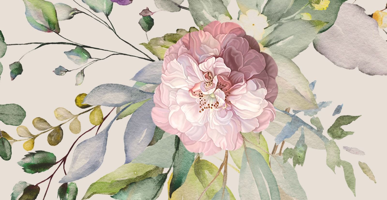 Pembe Çiçek ve Renkli Yapraklar Duvar Kağıdı
