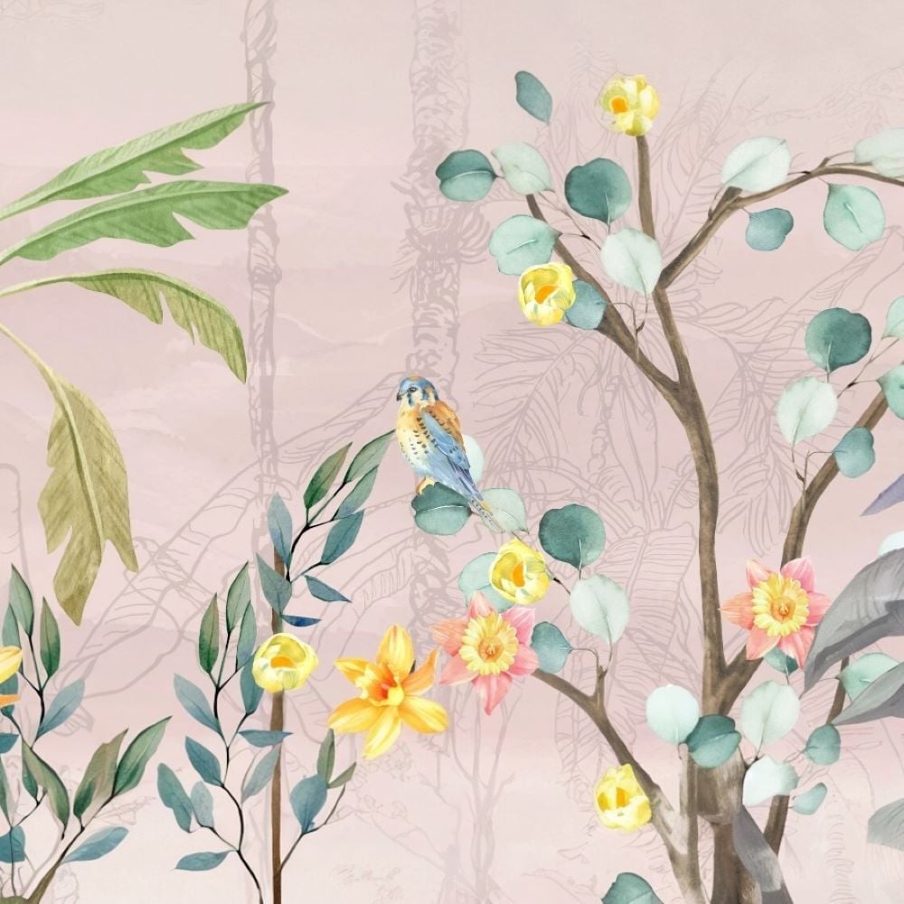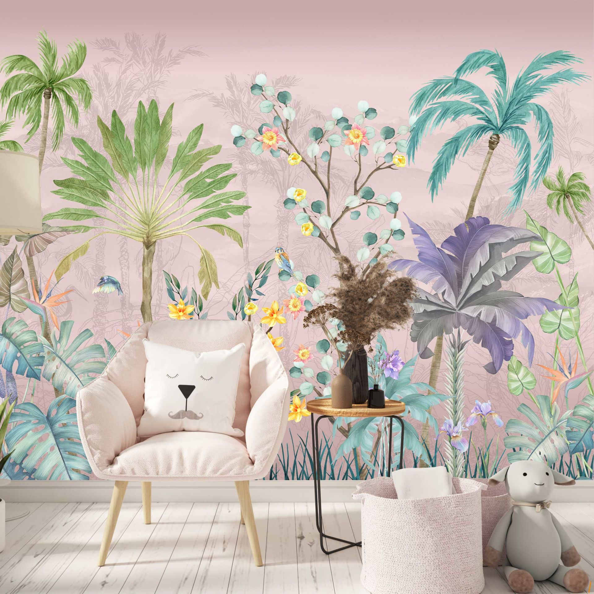 Pembe Zeminde Pamuk Çiçekleri Mutlu Çocuk Duvar Kağıdı
