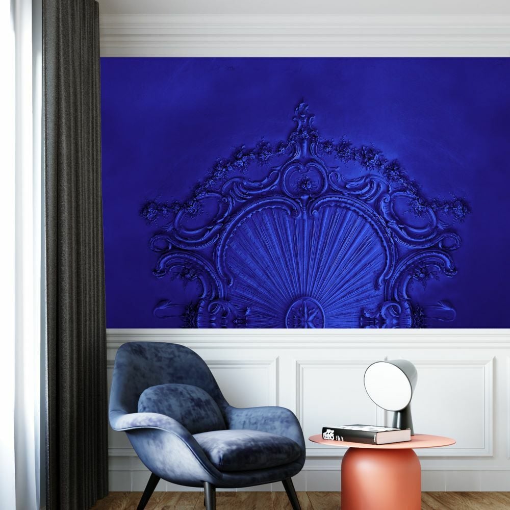 Petrol Mavisi Özel Tasarım Rölyef Çalışma Duvar Kağıdı