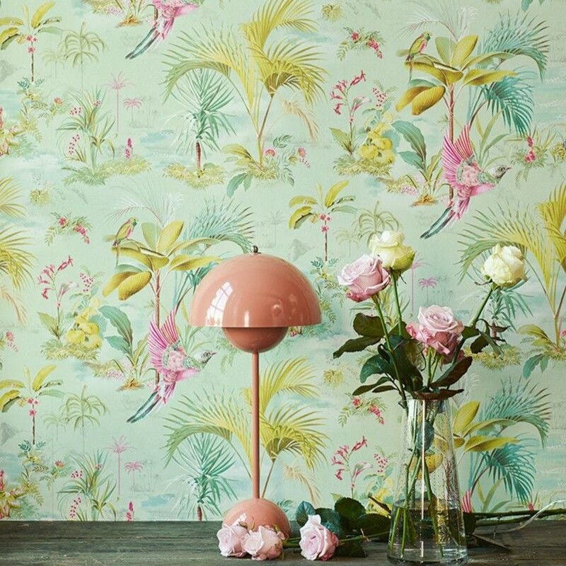 Özet Bilgi: Pip Studio, Yeşil rengin ferahlık veren görünümünden, palmiye ağaçları, cennet kuşları ve egzotik çiçeklerden ilham alarak, Palm Scene duvar kağıdını tasarlamıştır.