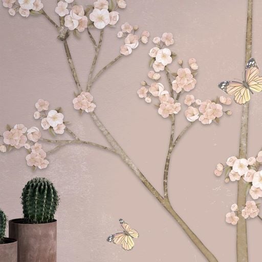 Pudra Zeminde Mini Çiçekler Kelebekler Duvar Kağıdı