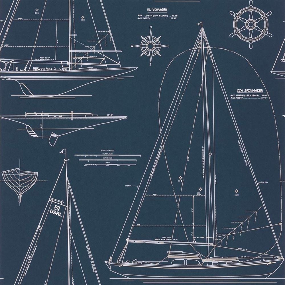 Ralph Lauren Boat Blueprint Dark Blue Duvar Kağıdı