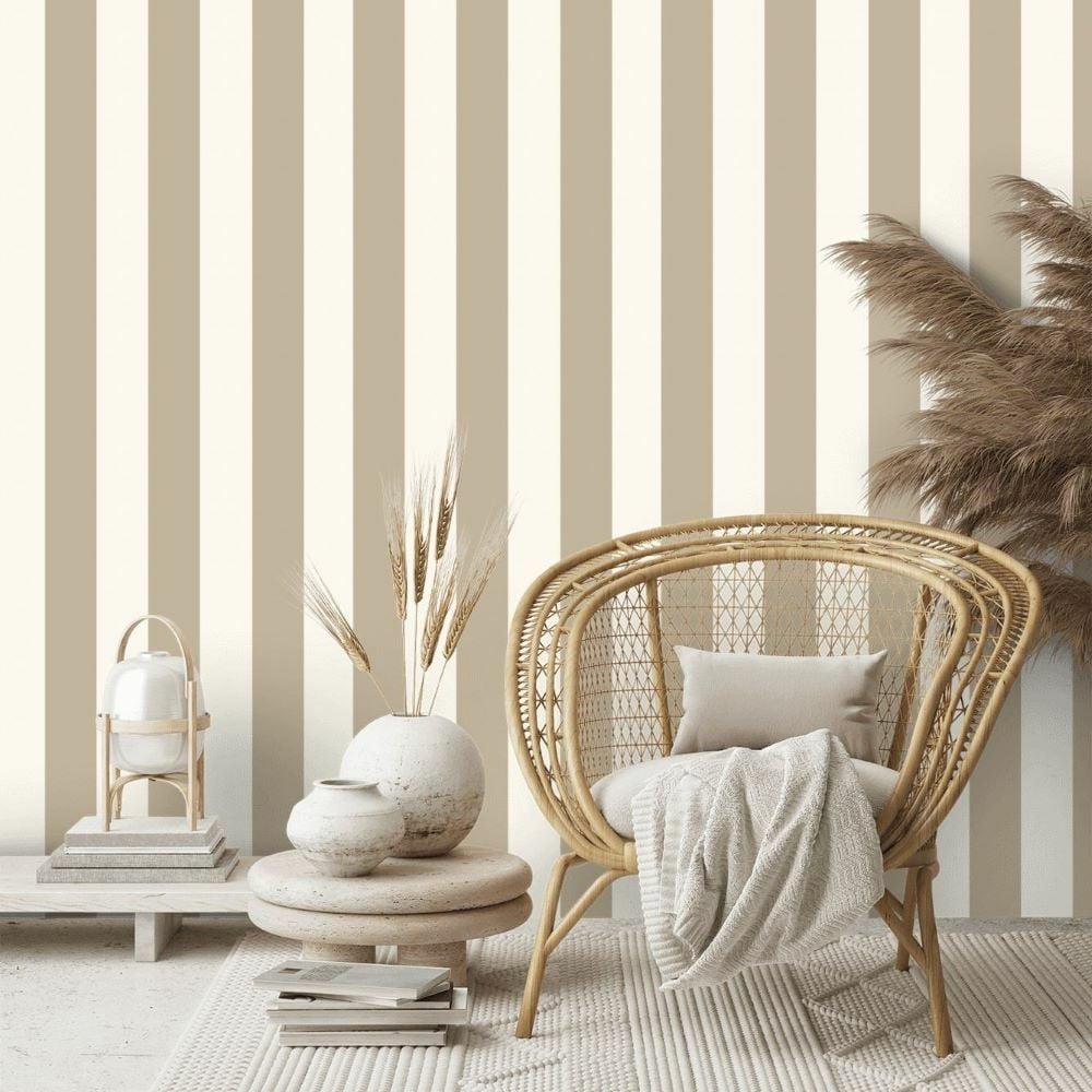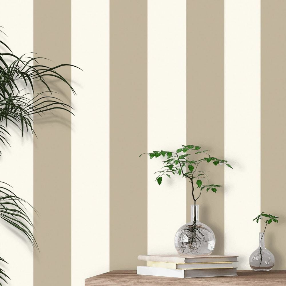 Ralph Lauren Çizgili Vinil Bej Beyaz Duvar Kağıdı