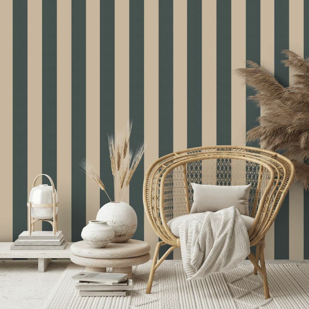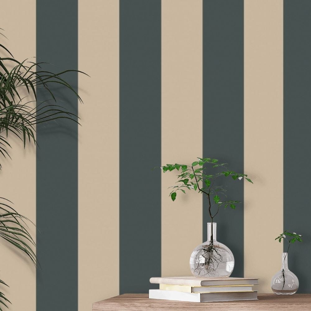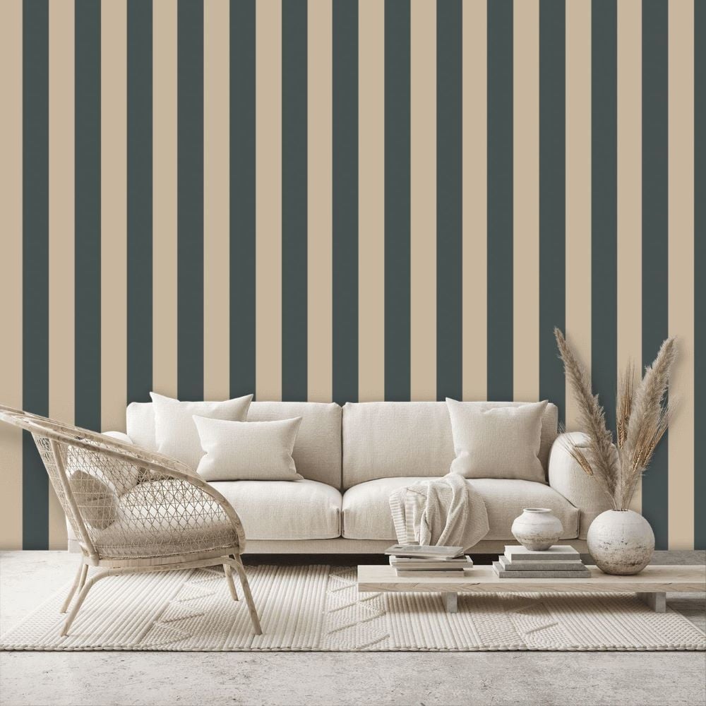 Ralph Lauren Çizgili Vinil Bej Siyah Duvar Kağıdı