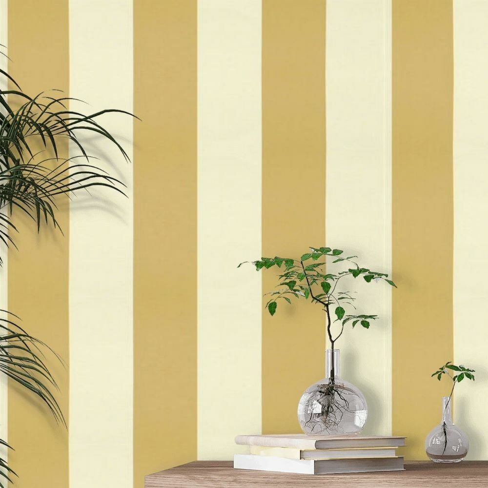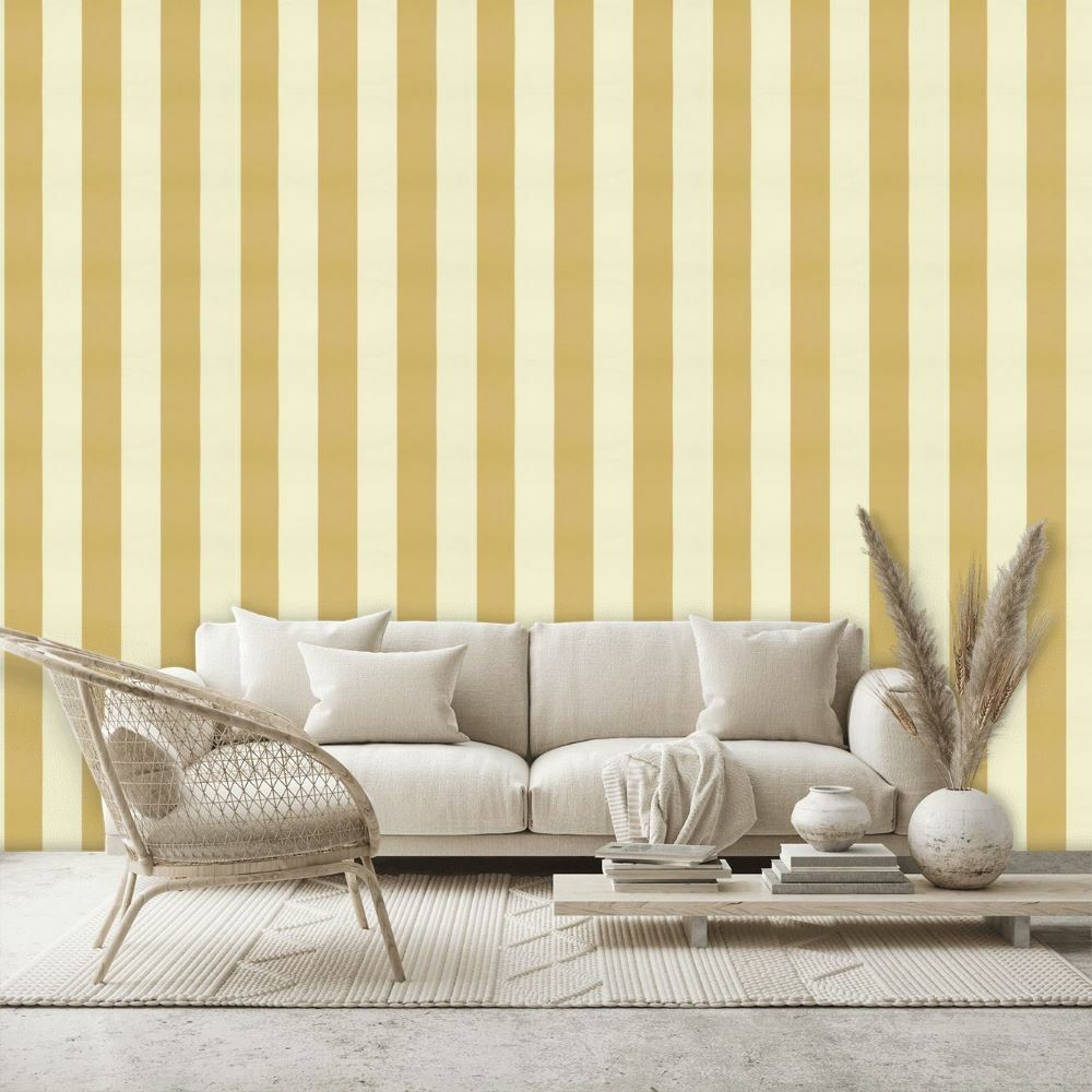 Ralph Lauren Çizgili Vinil Hardal Krem Duvar Kağıdı