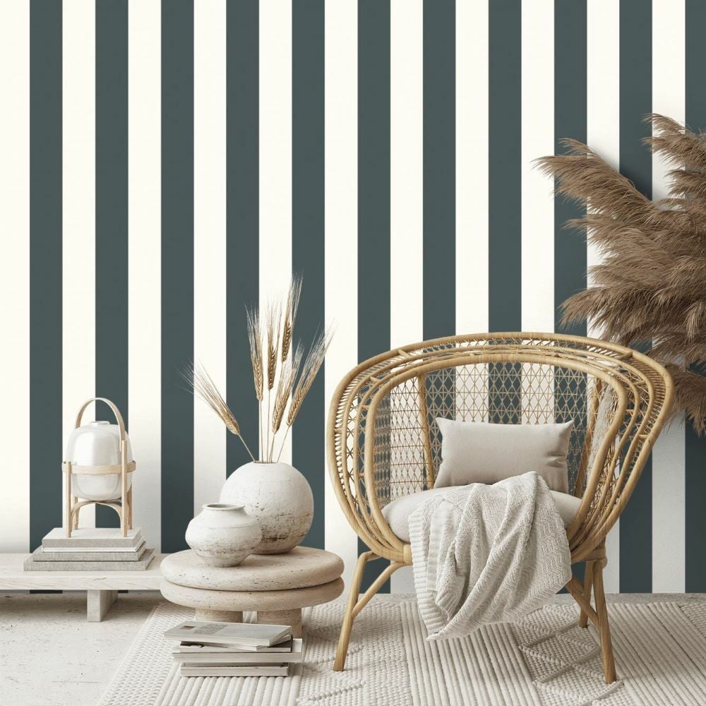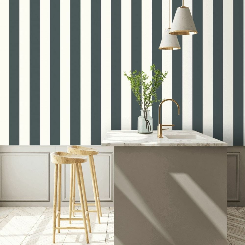 Ralph Lauren Çizgili Vinil Lacivert Bej Duvar Kağıdı