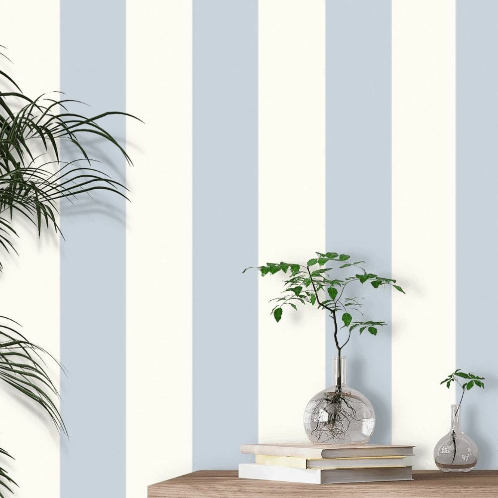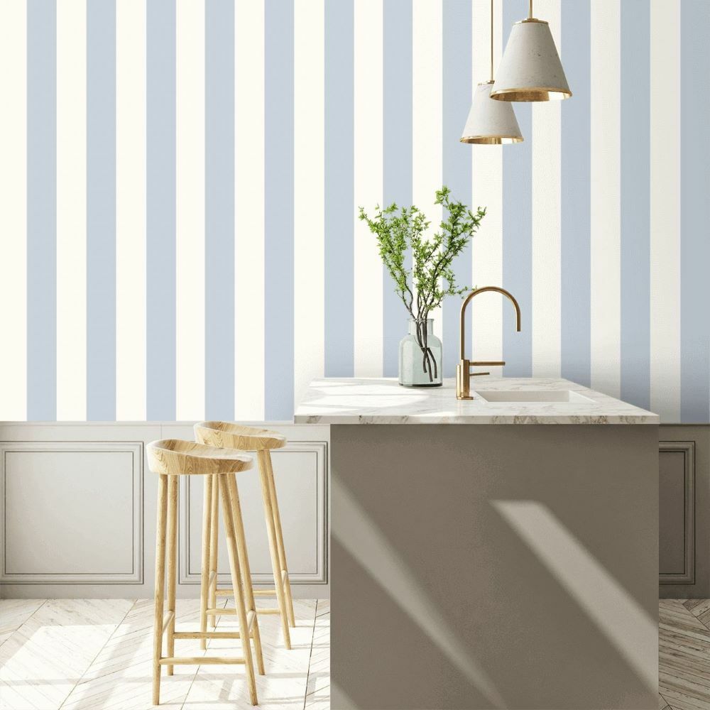 Ralph Lauren Çizgili Vinil Mavi Beyaz Duvar Kağıdı
