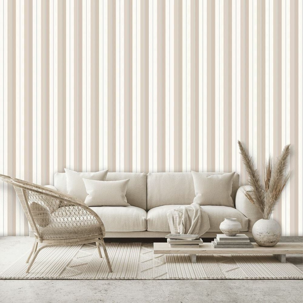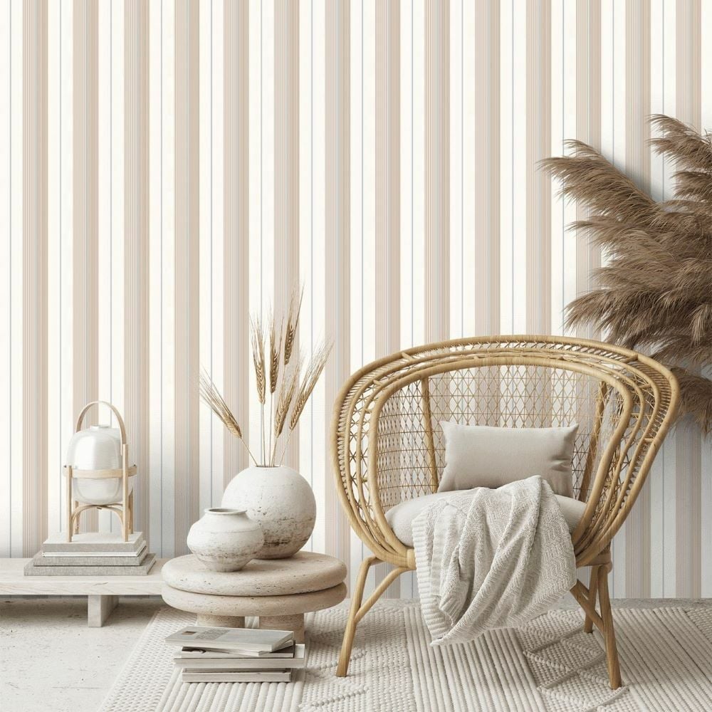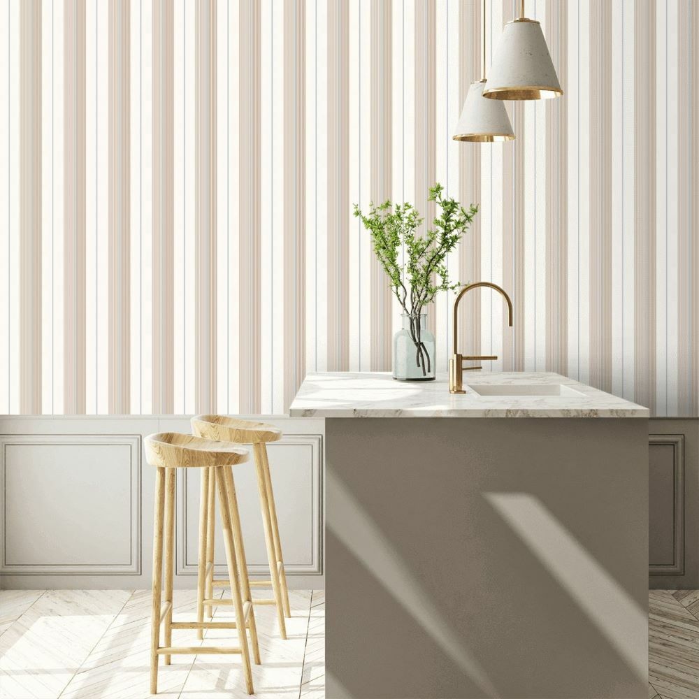 Ralph Lauren Mavi Pembe Beyaz Çizgili Vinil Duvar Kağıdı