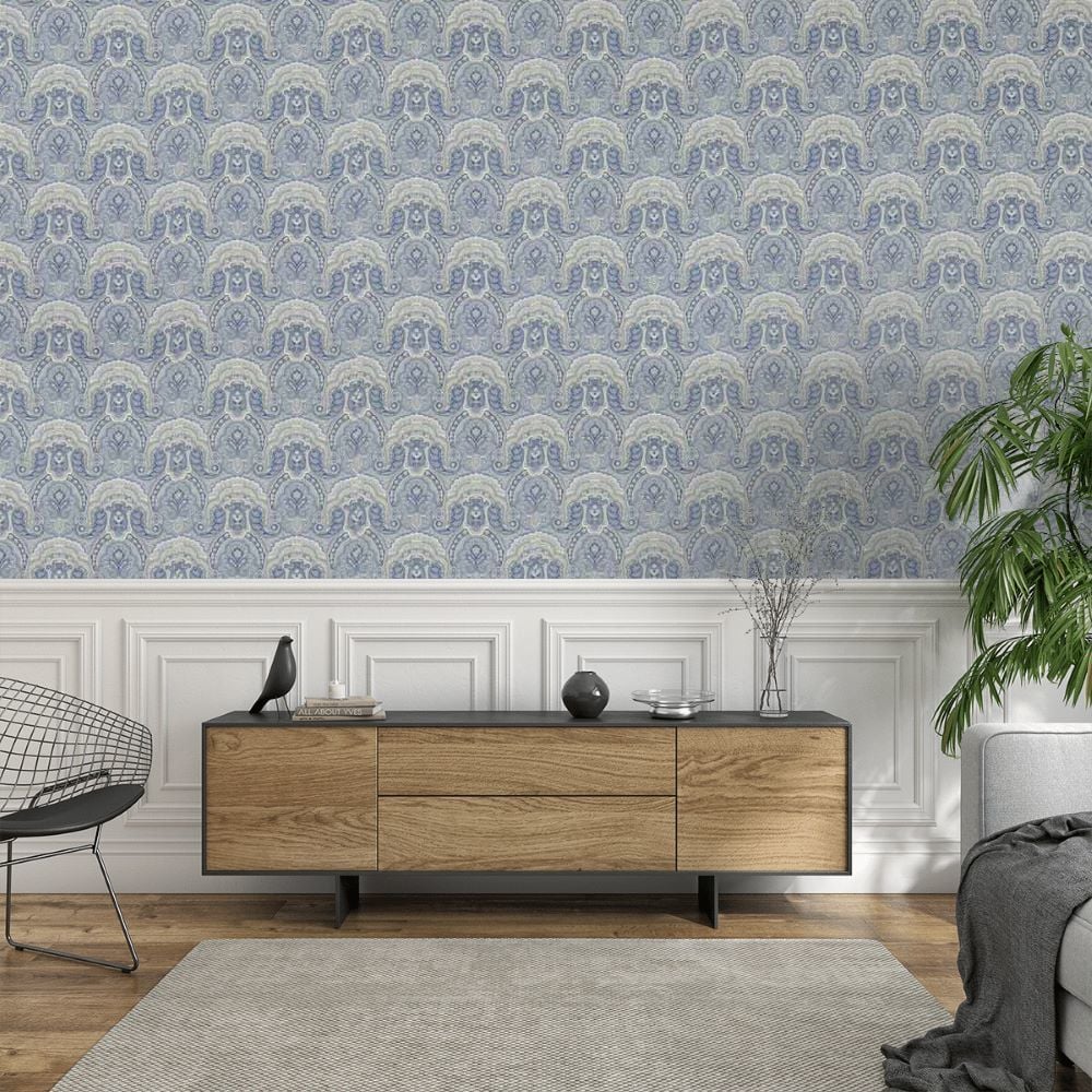 Ürün Açıklaması: Göz dolduran, sanatsal desenleri ile duvarlarınızda güçlü bir görünüm yakalamanızı sağlayan ‘Ralph Lauren Mavi Tonda Şal Desen Duvar Kağıdı’ görkemli bir atmosfer yaratır.