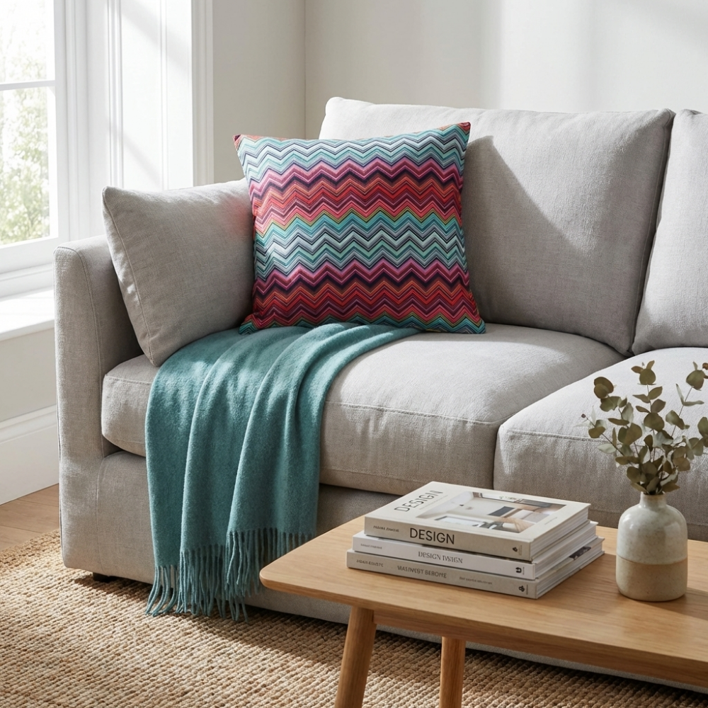 Renk Geçişli Zigzag Desenli Dekoratif Yastık