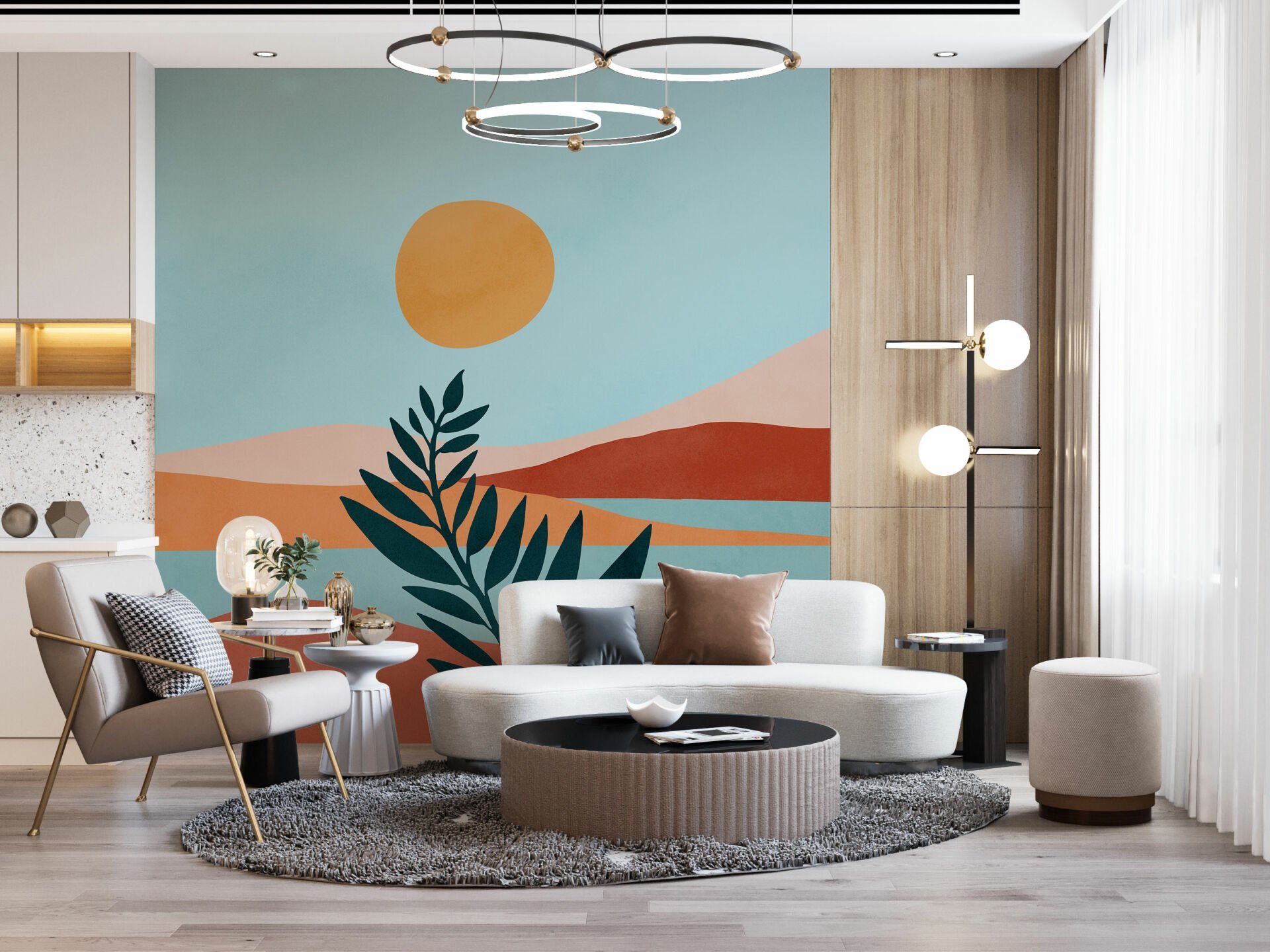 Renkli Geometrik Dağ Şekilleri Duvar Kağıdı