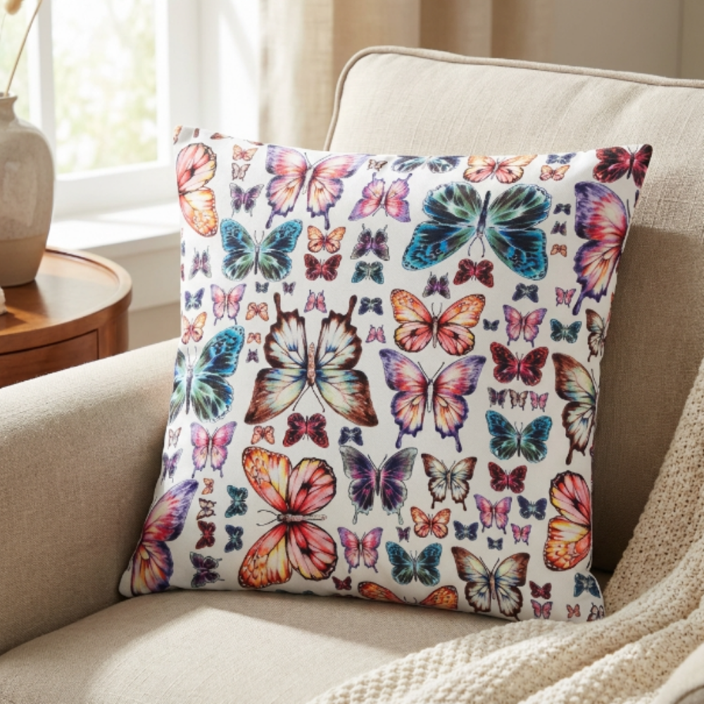 Renkli Kelebek Bahçesi Desenli Dekoratif Yastık