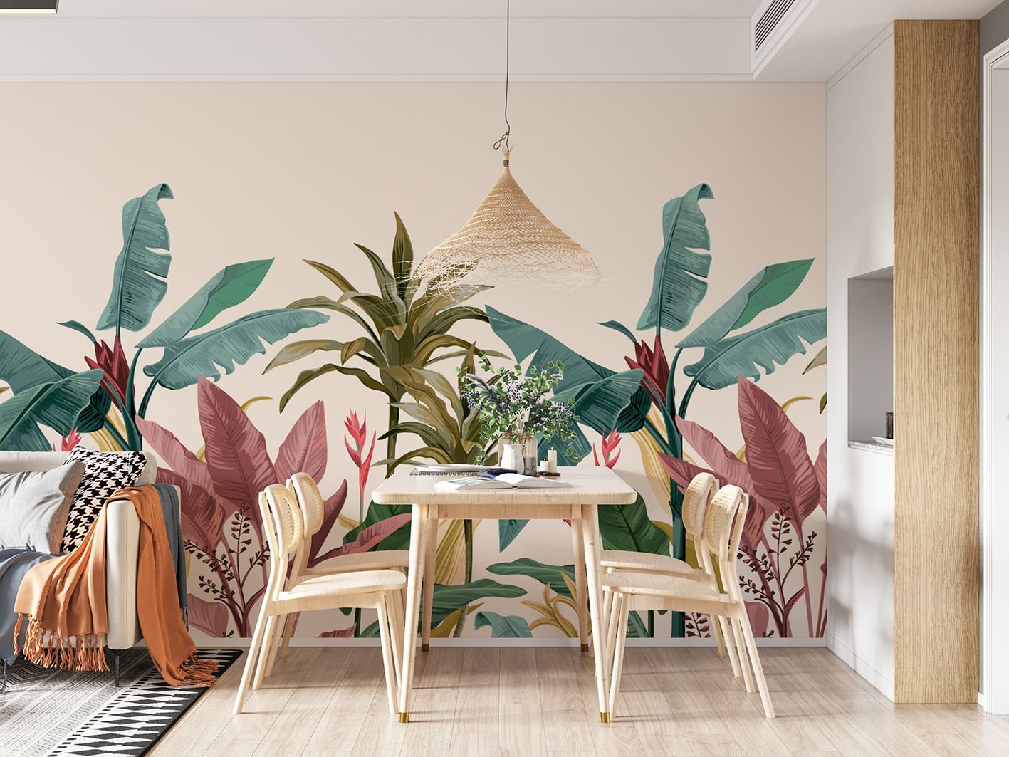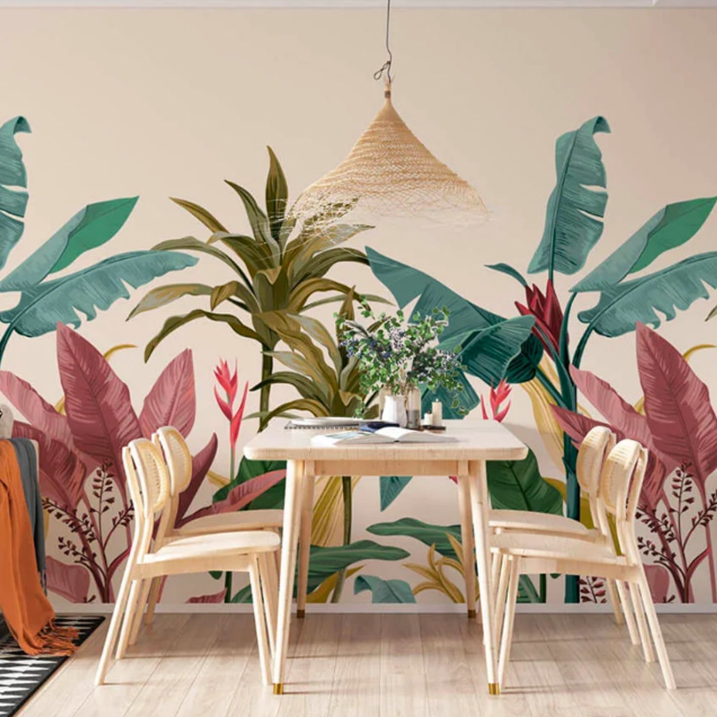 Renkli Tropik Ağaçlar Yapraklar Duvar Kağıdı