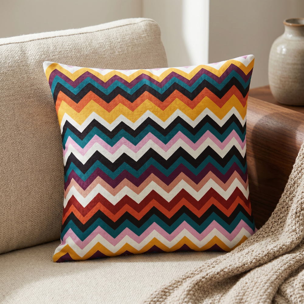 Retro Renk Patlaması Zigzag Desenli Dekoratif Yastık