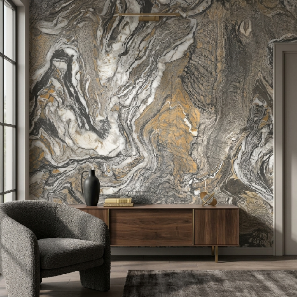 Fluida koleksiyonu içerisinde yer alan Rima İthal Duvar Kağıdı, akışkan yüzey efektlerinden ve mineral geçişlerden ilham alan tasarım yapısıyla yaşam alanlarına modern ve sanatsal bir şıklık kazandırır. Tenda Exclusive tarafından sunulan bu özel seri; dengeli renk geçişleri, doğal akış hissi veren dokusu ve sofistike görünümü ile mekânlarda güçlü ama zarif bir atmosfer oluşturur.