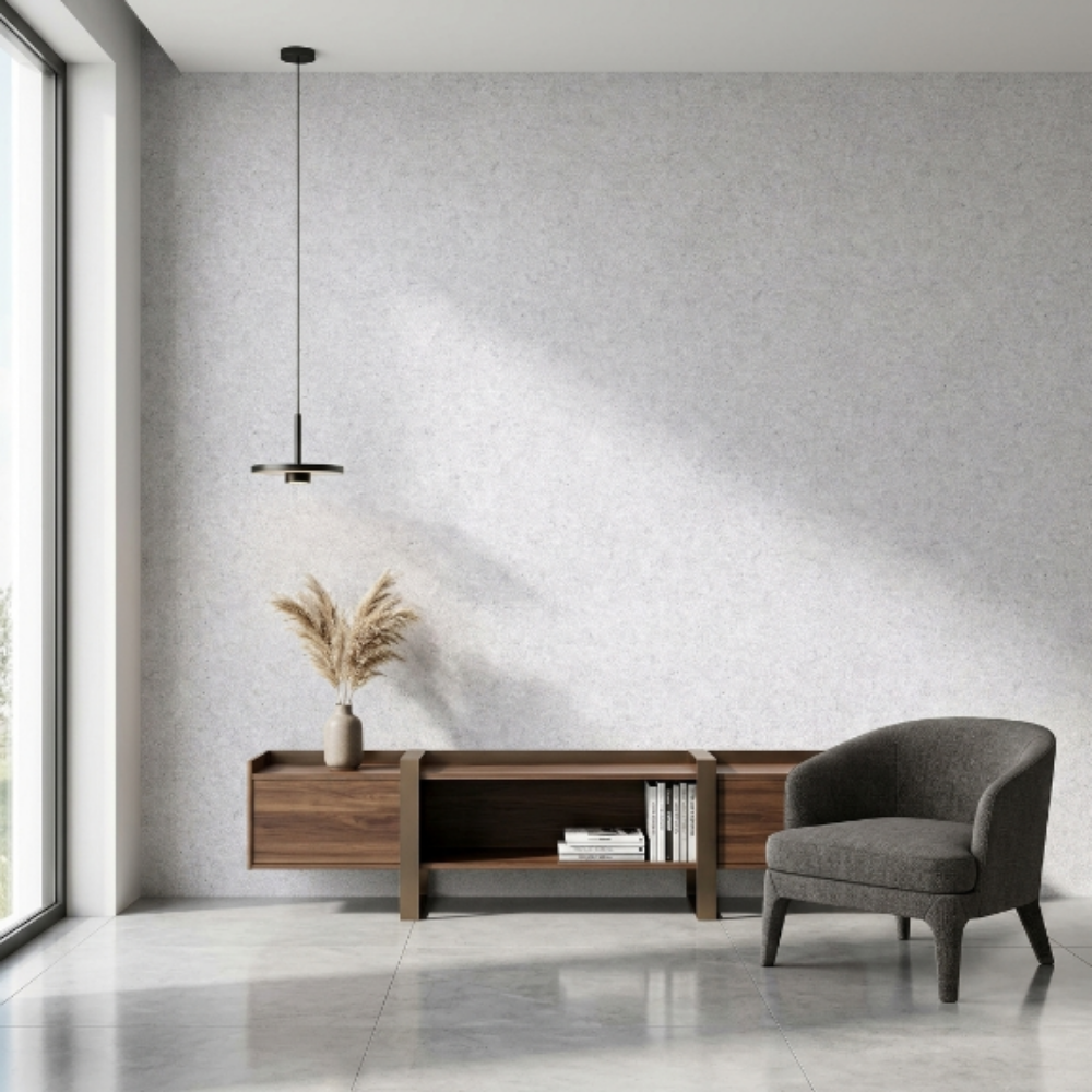 Yumuşak dokulu vinil yüzeyi sayesinde hem estetik hem de dayanıklılığı bir araya getirir. Mineral dokulu yüzey yapısı duvarlarda doğal bir derinlik ve karakter kazandırırken, modern, minimal ve çağdaş dekorasyonlarla kusursuz uyum sağlar. Salon, oturma odası, yatak odası, antre ve ofis gibi tüm iç mekânlarda rahatlıkla kullanılabilir.