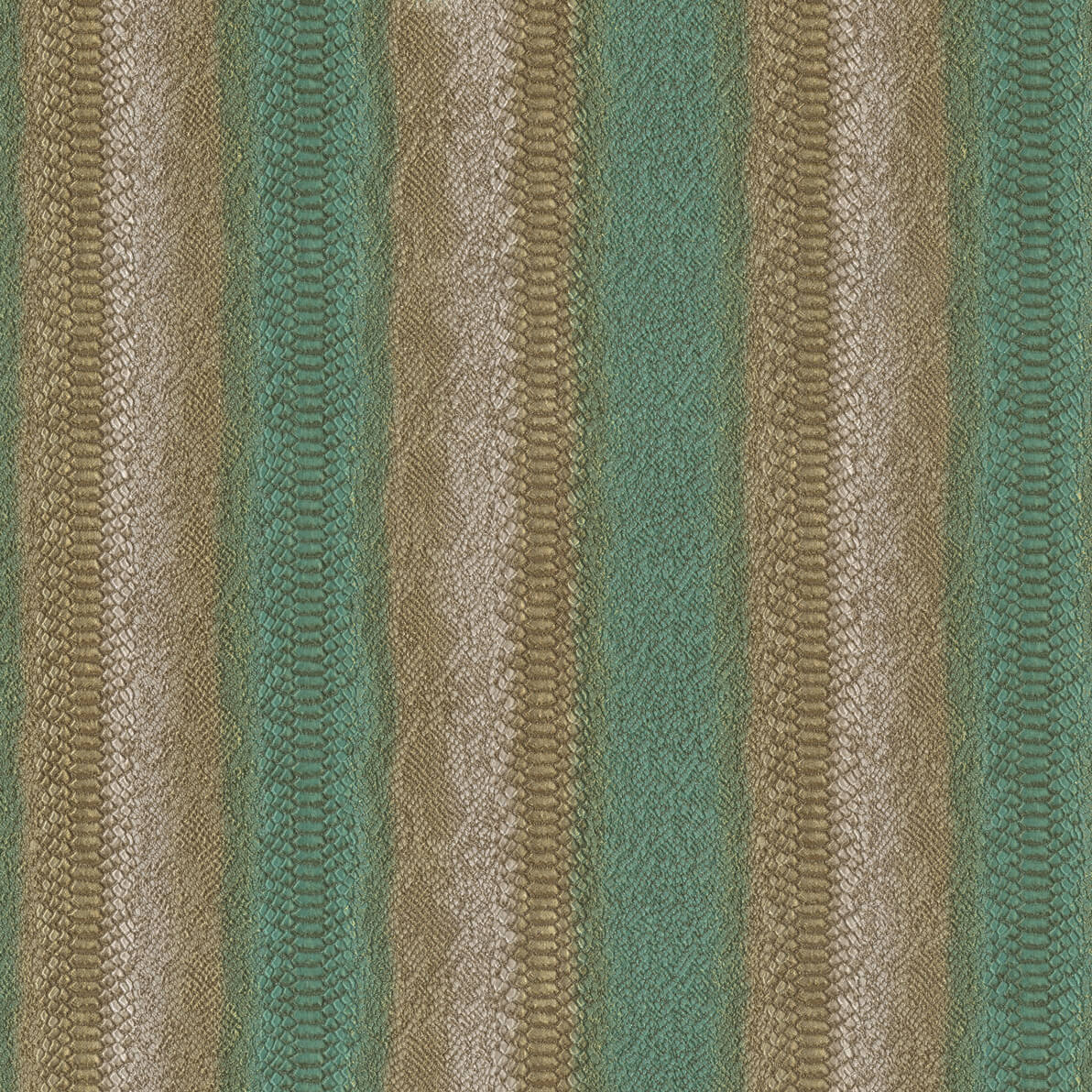 Roberto Cavalli Yeşil Kahve Dokulu Çizgili Duvar Kağıdı