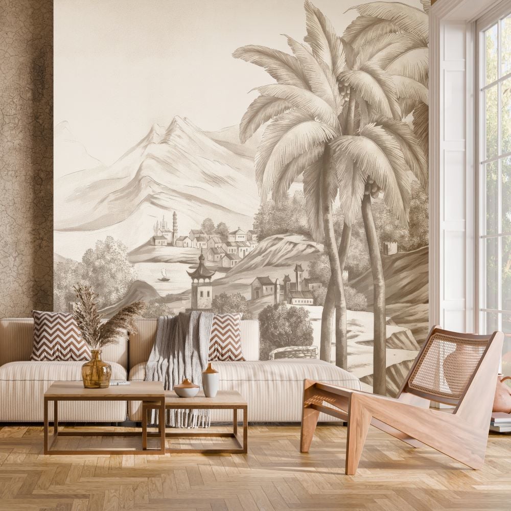 Rölyef Efektli Dağ Manzarası Tasarım Duvar Kağıdı