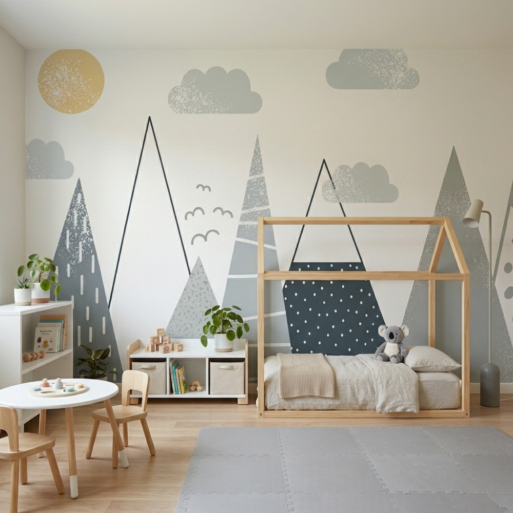 Geometrik formların modern ve dengeli yapısı ile tasarlanan Geometrik Düşler duvar kağıdı, çocuk odalarına enerjik ve estetik bir atmosfer kazandırır. Renklerin uyumlu geçişleri ve düzenli desen yapısı sayesinde duvar dekorasyonuna hareket katarken, mekânda dinamik ve şık bir görünüm oluşturur.