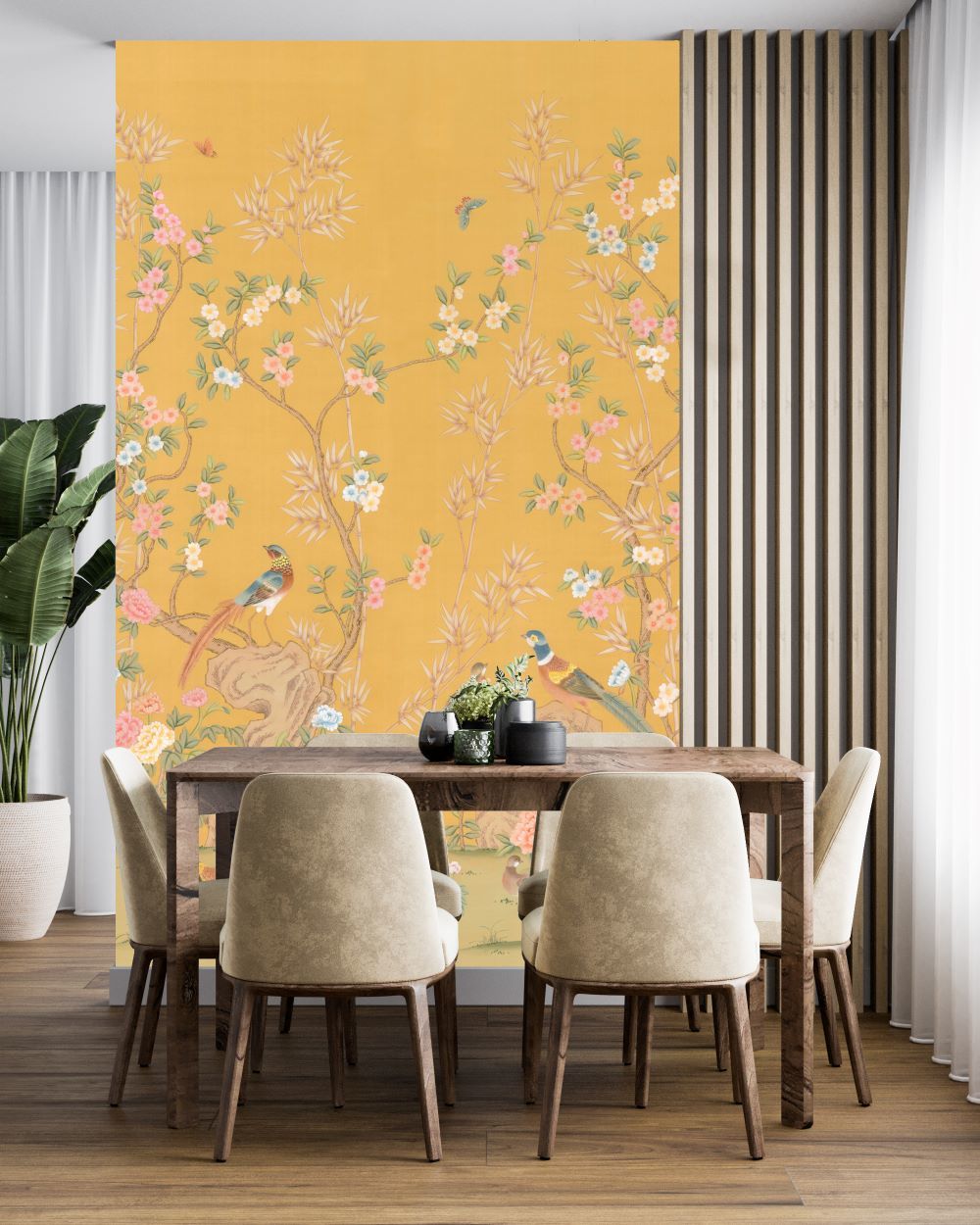 Sakla Beni Dizisi Safran Zemin Çiçekli Duvar Kağıdı