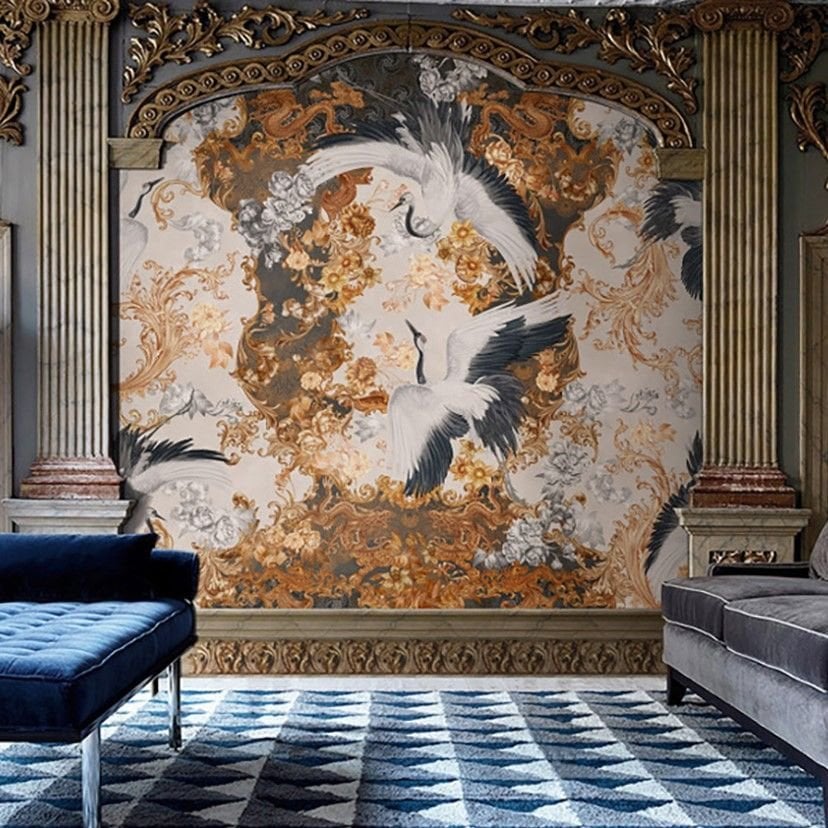 Şal Desen İçinde Kuğular Duvar Kağıdı