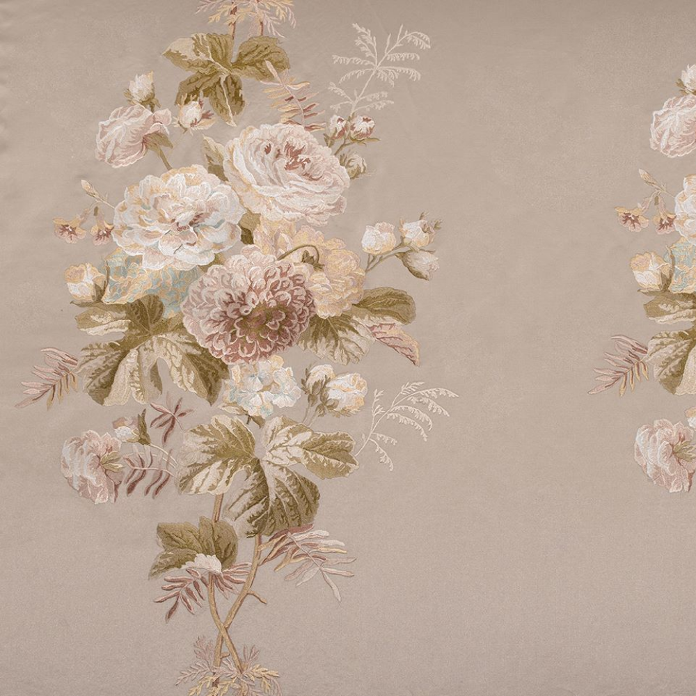 İpek ve pamuk karışımlı özel yapısı ile hem zarif hem de konforlu bir kullanım sunan bu kumaş, dekoratif pano uygulamalarında güçlü bir stil etkisi yaratır. Geniş desen tekrarı ve pano formu sayesinde mekâna derinlik ve karakter kazandırır.