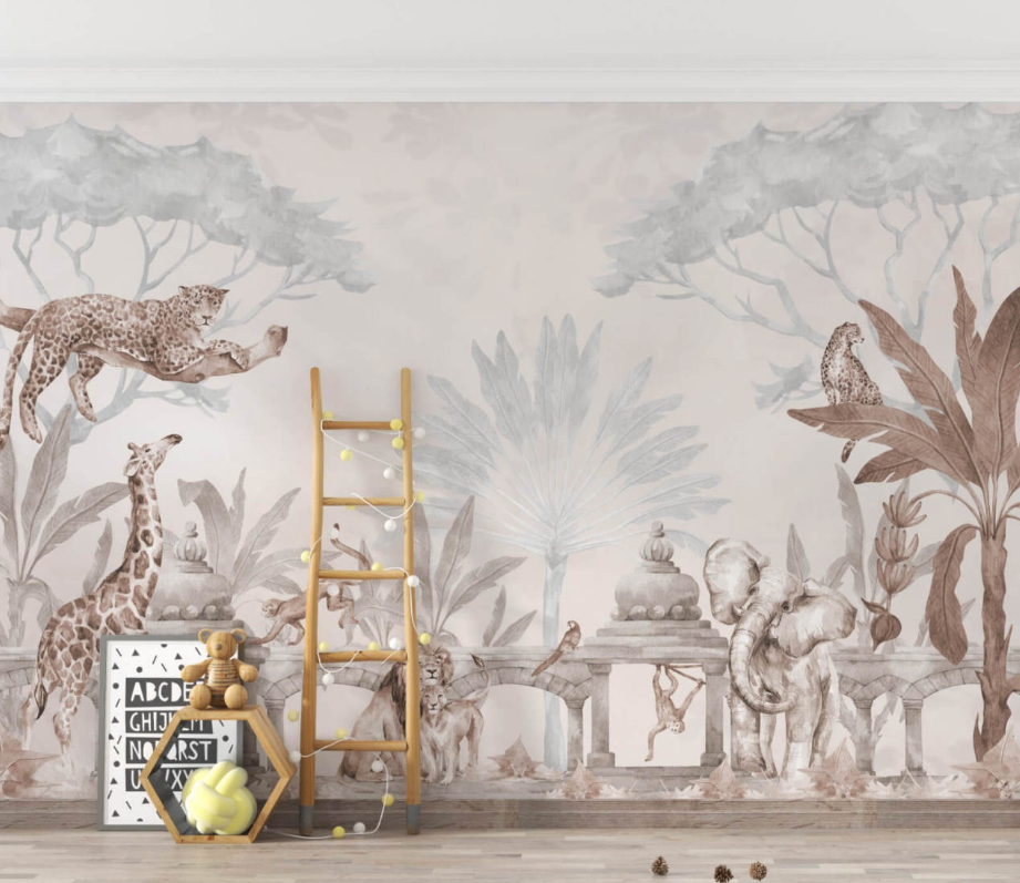 Sepya Renklerde Egzotik Hayvanlar Duvar Kağıdı