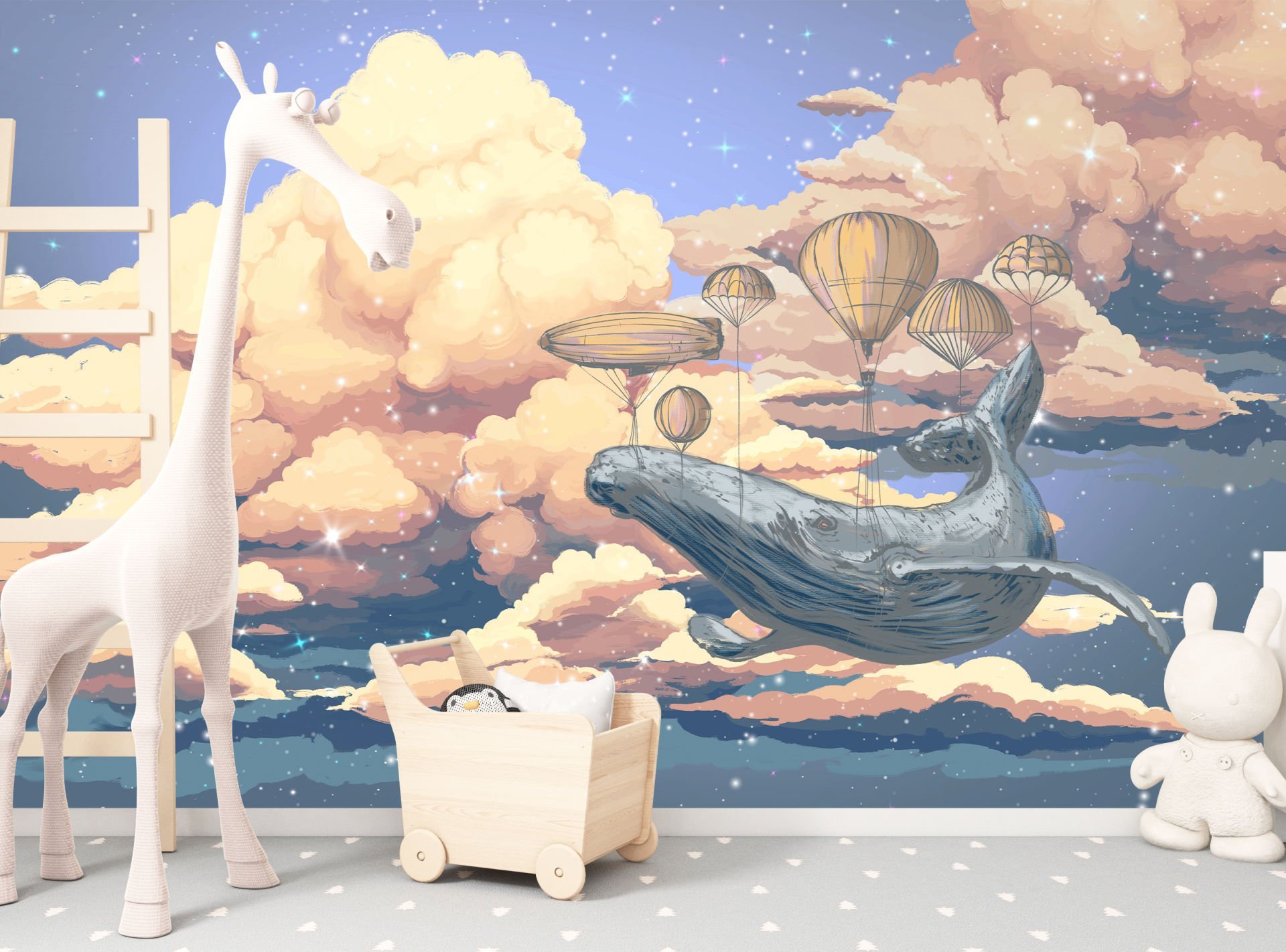 Sihirli Bulutlar İçinde Uçan Balina Duvar Kağıdı
