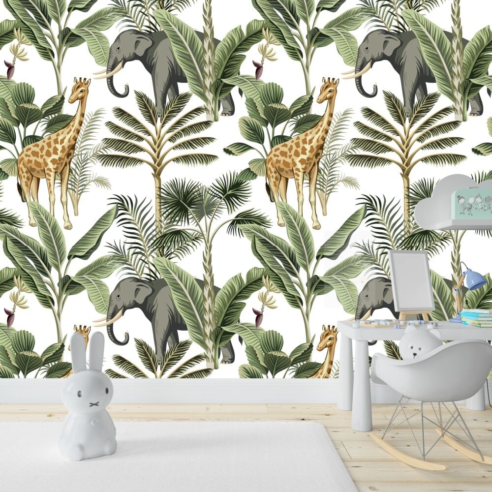 Şirin Filler Zürafalar Ağaçlar İçinde Duvar Kağıdı